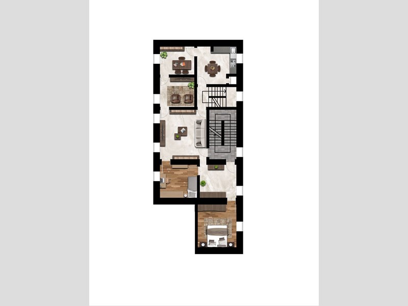 L'alloggio ha due ingressi, per questo si presta sia come abitazione prima casa che come abitazione con studio tecnico annesso oppure come attività di affittacamere o BB.