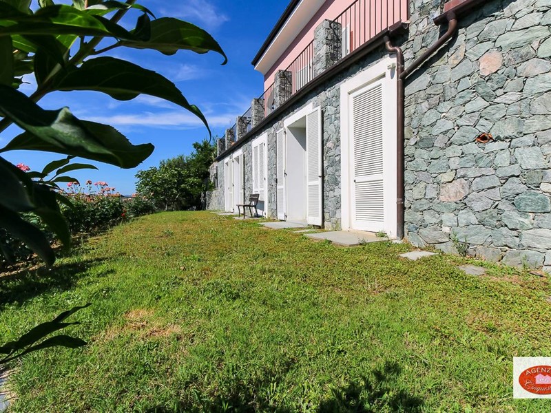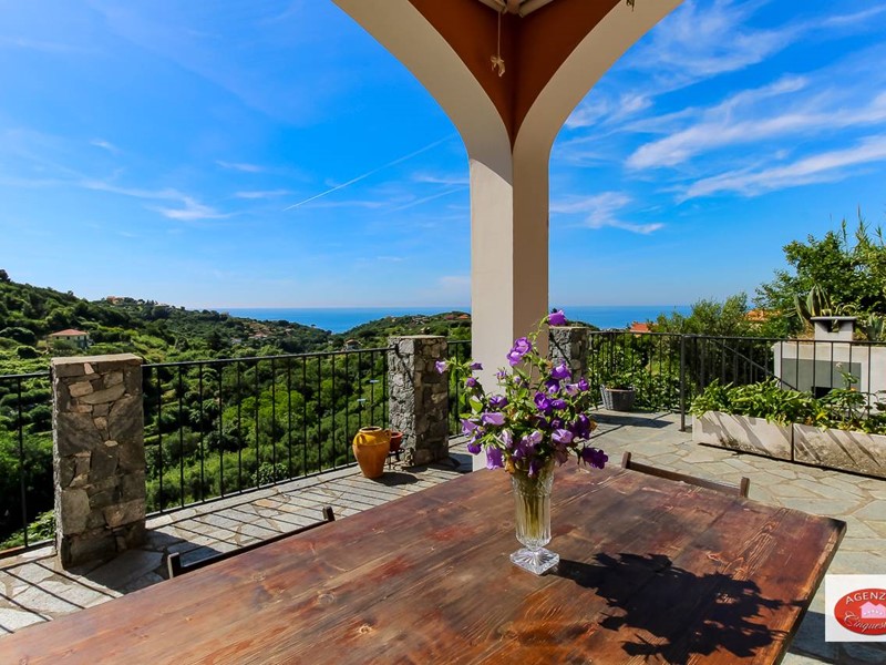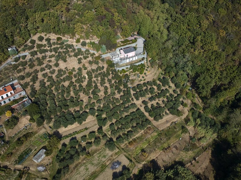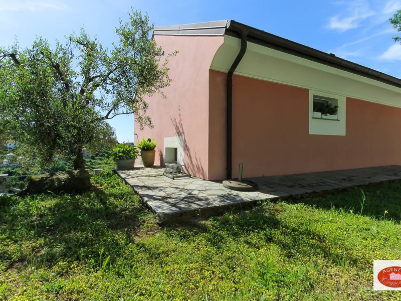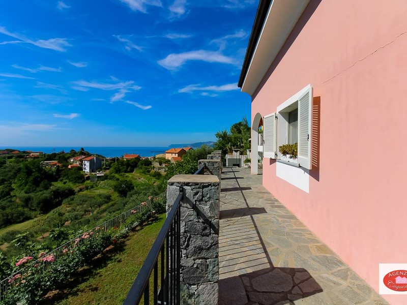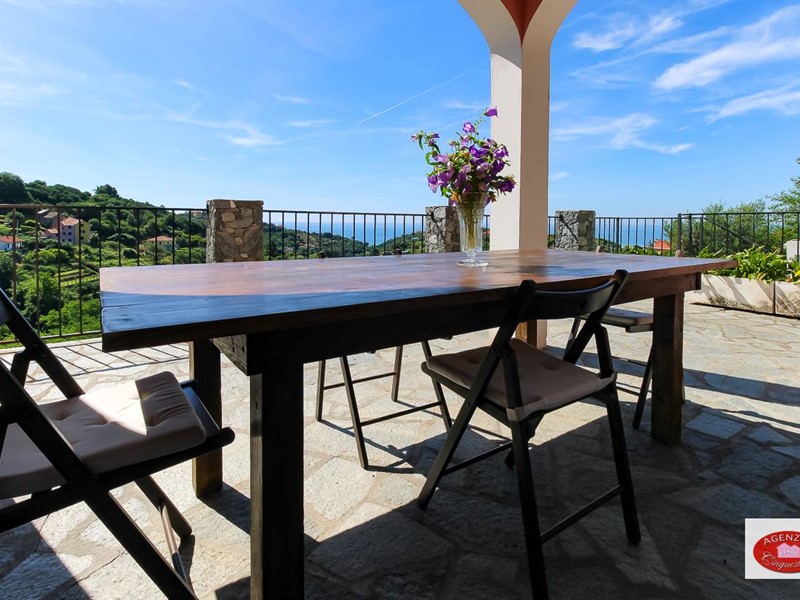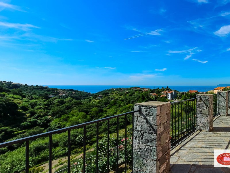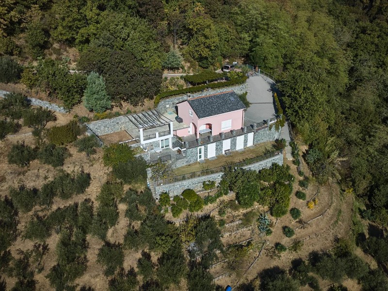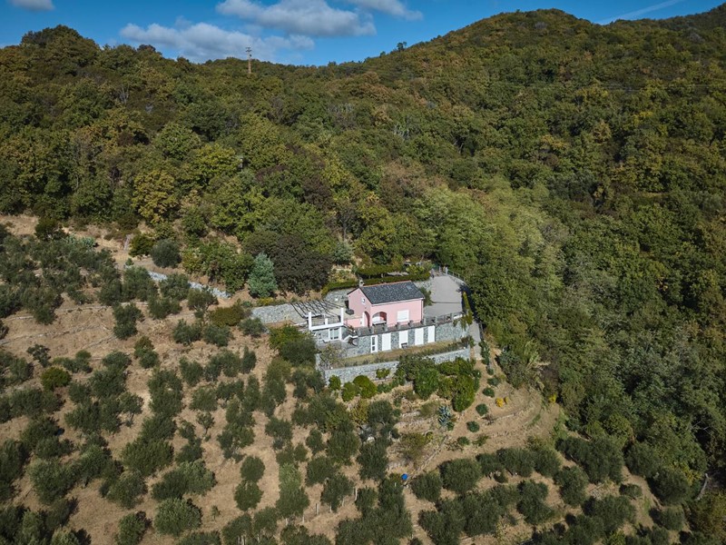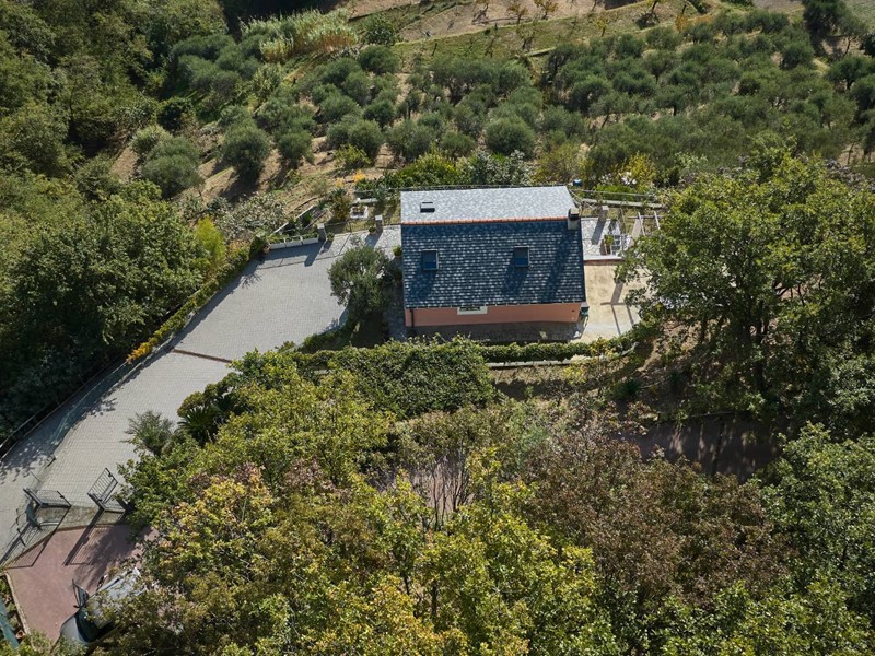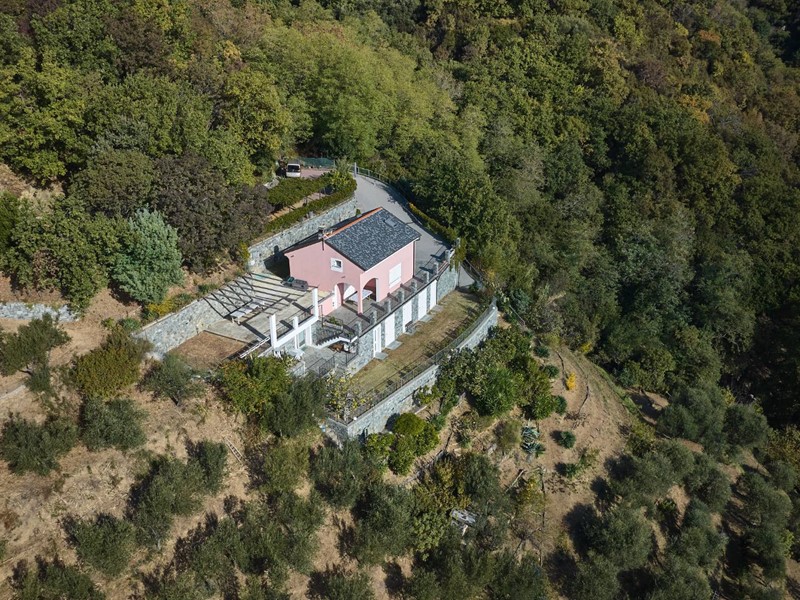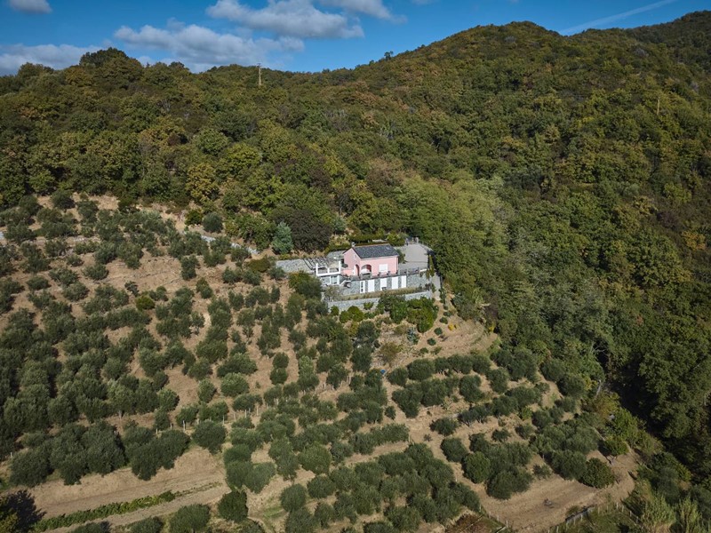 Villa nuova costruzione in vendita ad Albisola Superiore alla Costa dei Siri, con ampia e spettacolare vista Golfo Ligure, circondata da un terreno a fasce di circa 6.000 mq. piantumato ad ulivi ed alberi da frutta.