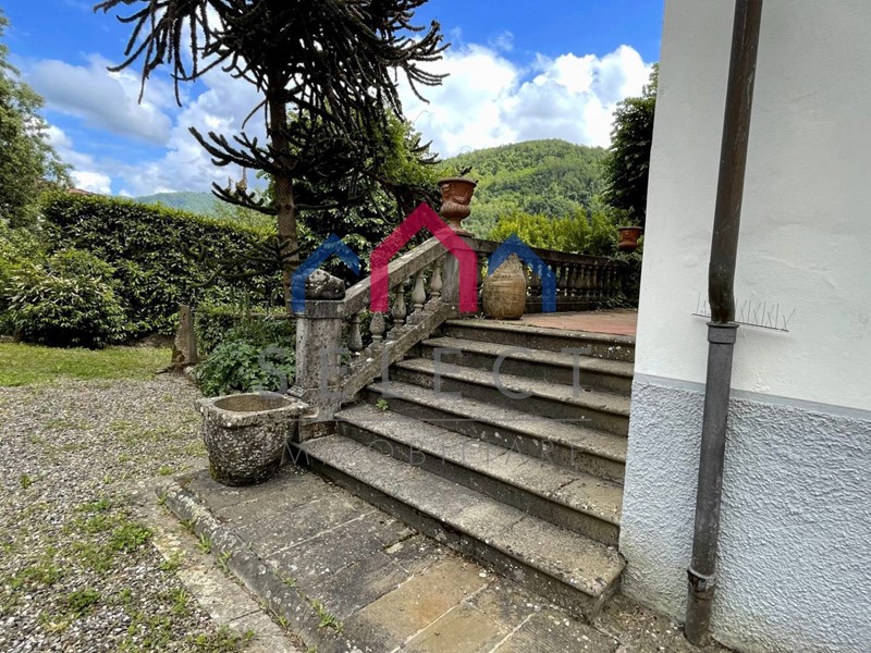 Nelle immediate vicinanze del centro storico di Bagni di Lucca, è in Vendita questa Villa disposta su quattro piani di 665 mq. con giardino e parco circostante di 2.500 mq.