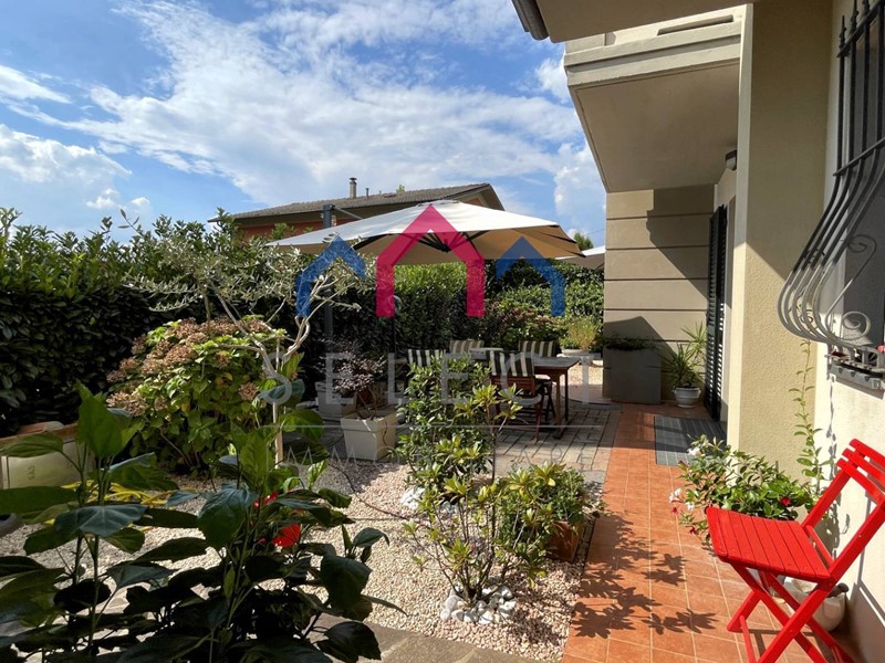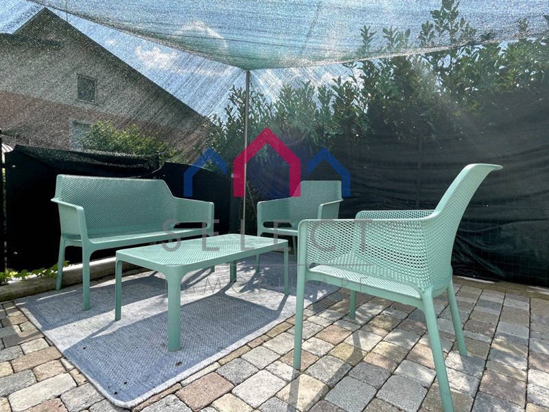 Sono una villetta a schiera, ma non sono come le altre. Ho uno spazio tutto mio, un giardino curatissimo in ogni dettaglio che ti invita a respirare aria fresca e godere di ogni momento all'aperto. Il sole qui splende generoso, sono esposta a sud, e puoi immaginare lunghi pomeriggi passati a rilassarti, magari leggendo un libro o sorseggiando una limonata fresca mentre il vento porta il profumo dei fiori. In un angolo appartato del giardino ho anche una piccola casetta in legno ad uso di rimessa. Chiaramente ho anche uno spazio a parcheggio per due auto, che è coperto da una struttura sulla quale sono inseriti dei pannelli fotovoltaici per la produzione di energia elettrica per 5,5 kw.