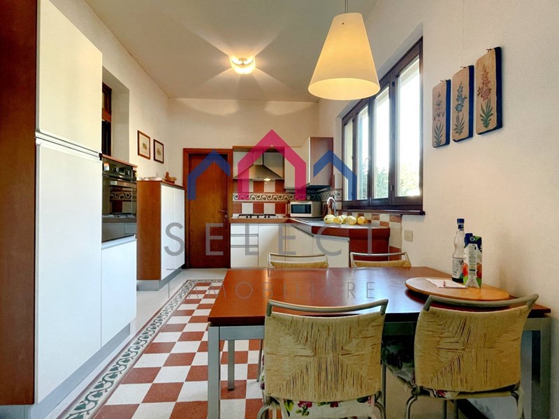 Adiacente al soggiorno troviamo la cucina, anchessa con accesso diretto allarea esterna, dotata di una comoda dispensa e impreziosita da una grande vetrata che regala luce e continuità con lambiente esterno.
