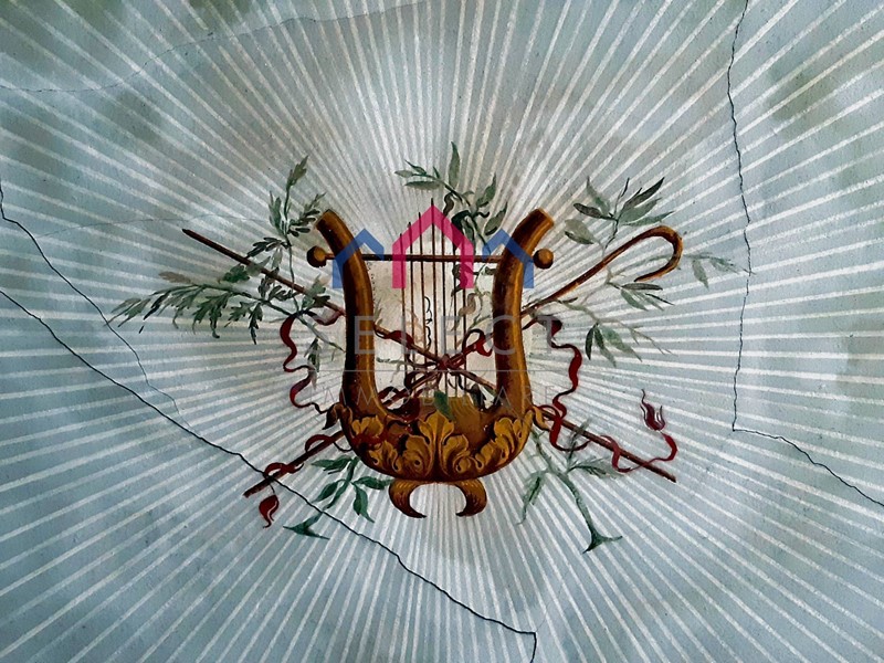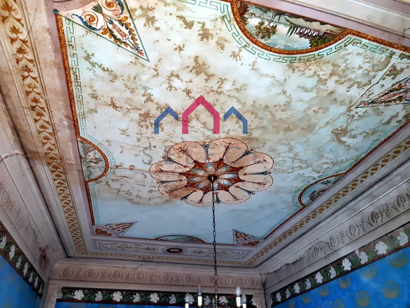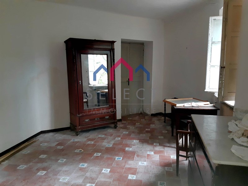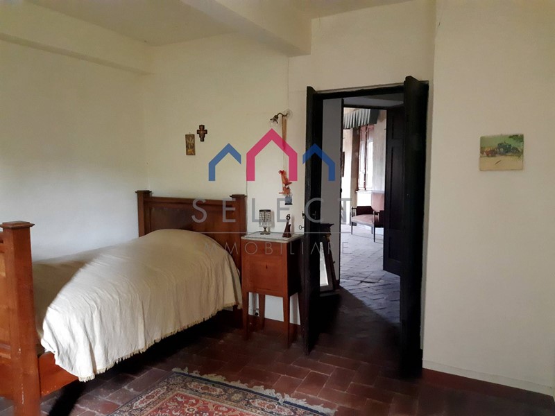 Limmobile è costituito da un grande edificio affacciato sulla strada comunale, ed al di là di essa un gradevole giardino affacciato sulla vallata del paese. È disposto su quattro piani compreso il seminterrato per una superficie complessiva di circa 700 mq. lordi. Al momento le unità immobiliari allinterno dellimmobile sono due abitazioni. Si compone di quattro vani uso cantine al piano seminterrato; al piano terra abbiamo lingresso comune, a destra due vani uso cantina, cisterna interna, ripostigli e forno, a sinistra abbiamo un appartamento costituito da ingresso, ampia cucina con camino, due camere disimpegno, bagno e altri tre vani della zona giorno, oltre le scale per laccesso al piano seminterrato; al piano primo, nella parte nobile delledificio, abbiamo laltro grande appartamento costituito da disimpegno, studio, cucina abitabile, camera con bagno, terrazzo e bellissima loggia coperta e bagno, dallaltra parte dellappartamento abbiamo un soggiorno, disimpegno, ampio salone affrescato, bagno, disimpegno e cinque camere; al piano ultimo e sottotetto abbiamo altri dieci vani uso soffitta in parte trasformabili in abitabili. A corredo e di fronte alledificio ma oltre la strada, giardinetto esterno per una superficie di circa 310 mq.