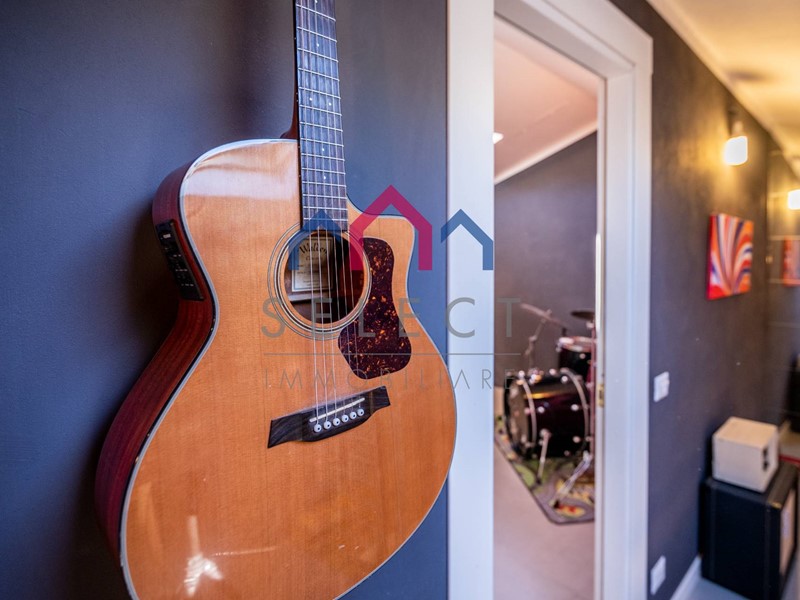 La residenza si apre direttamente sullampia zona giorno, ben definita nelle varie zone dallarredamento, come quella della cucina, del pranzo, del relax e dello studio. Le due ampie portefinestre portano moltissima luce naturale allinterno, che sfiora i colori ed i materiali in unatmosfera rilassante. Da una delle due portefinestre troviamo un piccolissimo terrazzino ed un ripostiglio esterno. Di fronte alle scale di entrata abbiamo un bagno con doccia per la zona giorno, ed a sinistra abbiamo lampia camera matrimoniale con il soffitto molto alto e scenografico.