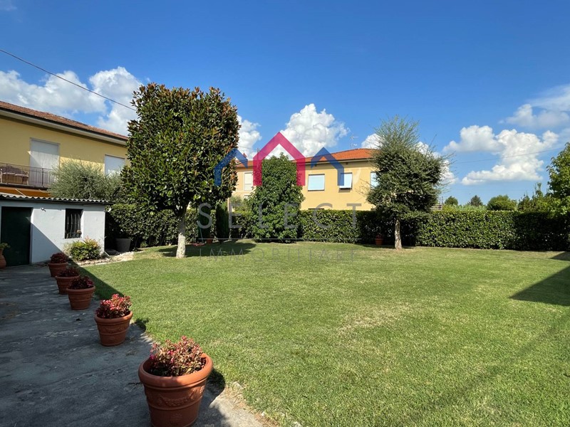 Nel giardino sono presenti due grandi magnolie, due liquidambar, due cipressi, un ulivo, un carpino piramidalis, due lecci, una sughera e un liliodendro. Sul retro della casa si trova un ripostiglio per il ricovero degli attrezzi o eventuali accessori per una possibile piscina.