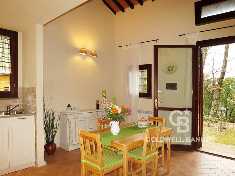 CBI073-605-129912- La Coldwell Banker propone in esclusiva una graziosa villetta terratetto situata nel complesso residenziale di "Borgo La Fungaia", nella località di Camporbiano, Comune di Gambassi Terme. Immerso nel cuore delle colline toscane, questo piccolo borgo si trova tra i famosi vigneti del Chianti e i granai di Pisa, caratterizzati da tramonti e panorami mozzafiato; località ideale per il relax e per raggiungere le più importanti mete artistiche e culturali della Toscana. Il complesso residenziale gode di riservatezza, giardini privati, ampio parco e piscina ad uso comune. La casa, costruita recentemente, è in stile rustico toscano, con soffitti e travi a vista. L'ingresso indipendente immette subito nella zona giorno, con cucina e soggiorno open space, su cui si affaccia il davanzale della mansarda. Sempre al piano terra, sono presenti un bagno con antibagno, un ripostiglio e le scale che portano alla zona notte. Dopo pochi scalini si accede alla spaziosa camera matrimoniale e tramite una seconda piccola rampa di scale si accede alla mansarda adibita a seconda camera, dotata di armadio fatto su misura e tende oscuranti. La casa viene venduta parzialmente arredata, se gradito, può essere valutata la vendita di tutti i mobili. Completa la proprietà un giardino privato, di circa 112mq, che circonda i 3 lati liberi, con siepe, pietra e marciapiede perimetrale in cotto. Sono disponibili due posti auto nellampio parcheggio condominiale. Predisposizione di canna fumaria per installazione caminetto o stufa a pellet. Piscina condominiale di 16x6,5 metri.