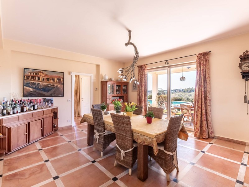 La villa si sviluppa su tre livelli, offrendo una superficie complessiva di circa 560 m² oltre 2000 mq di giardino e tre ettari di terreno agricolo / boschivo. La Villa è cosi composta : al piano terra troviamo un ampio ingresso di rappresentanza, salone triplo con camino e vetrate vista piscina e giardino, grande sala da pranzo con angolo bar, cucina abitabile con splendidi affacci sulla vallata, camera da letto attualmente utilizzata come studio e un bagno. Al primo piano troviamo la zona notte composta da una master suite con bagno, vestiere ed uscita sul balcone. Sono presenti altre tre camere da letto (di cui una con balcone) e doppi servizi . Al piano S1 troviamo cinque ampi locali che si prestano per varie esigenze a servizio della proprietà. E' presente un comodo garage di circa 70 mq collegato internamente al piano S1 tramite porta blindata.