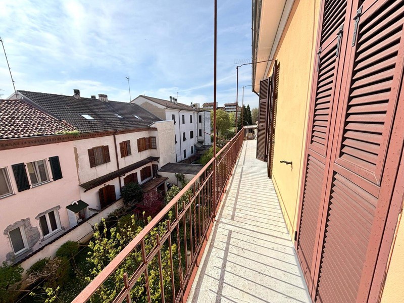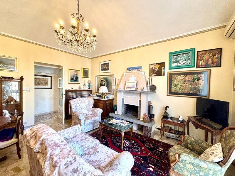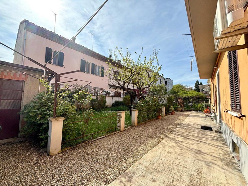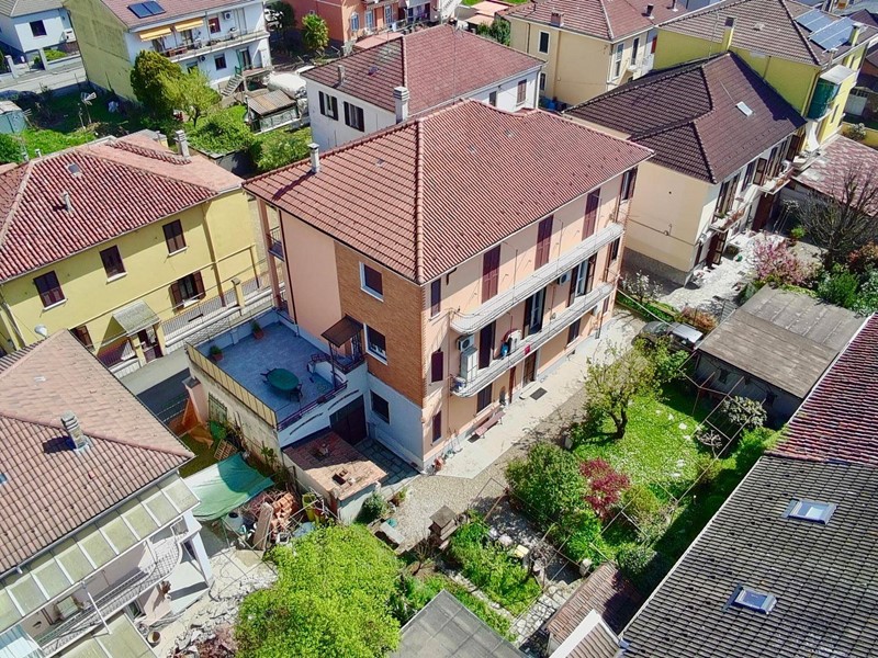 Così composto: al P.T. 2 alloggi di ingresso, tinello cucinino, camera letto e bagno, di cui uno completamente ristrutturato. Al P.1° ampio alloggio unico di cucina abitabile, sala, 3 camere, 2 bagni, 2 balconi e ampio terrazzo di circa 35 mq., al p.2° ulteriore alloggio di cucina, sala, 3 camere, 2 bagni, ripostiglio e 3 balconi. Cantina, 2 garage, ampio giardino con ricovero attrezzi.