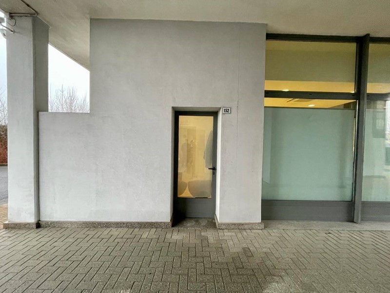 Grande vetrina sul fronte e sul fianco dello stabile. Ingresso secondario sul fianco della proprietà.