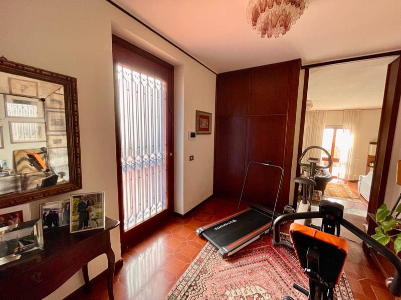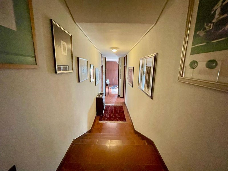 ingresso su zona giorno dove vi è un salone doppio con camino a vista, si procede con una cucina abitabile, 4 camere da letto, una camera/studio e 3 bagni. Locale caldaia sotterraneo, avente anche il centro di controllo per i pannelli solari siti in uno spazio esterno cementato. Infissi in legno doppio vetro.