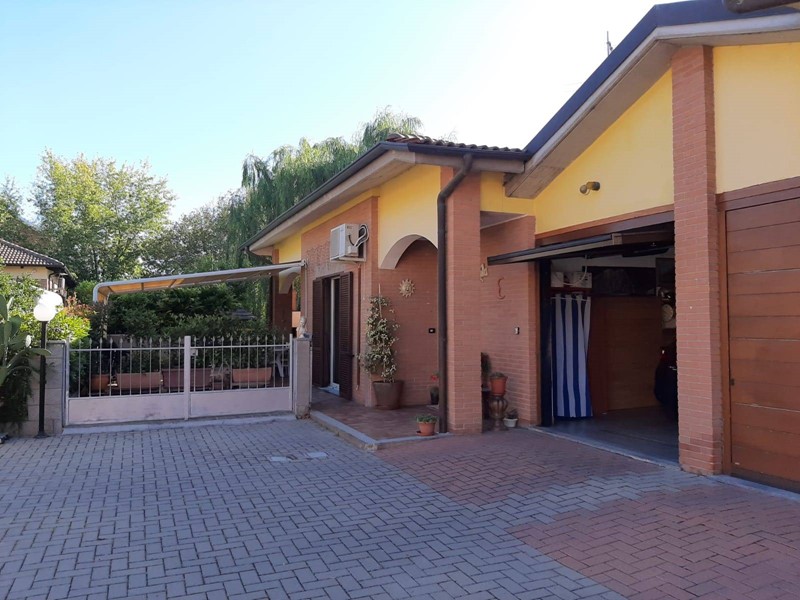 ALESSANDRIA CABANETTE: In contesto signorile comodo per raggiungere la citta' vicino alla nuova pista ciclabile ed alla fermata dell'autobus, proponiamo VILLETTA UNICO PIANO DI RECENTE COSTRUZIONE libera 3 lati con giardino e portico. L' immobile è disposto su un unico piano composto da ampia sala, cucina abitabile a vista, 3 camere da letto spaziose, 2 bagni, Box auto, ampia Cantina, GIARDINO, Cortile.