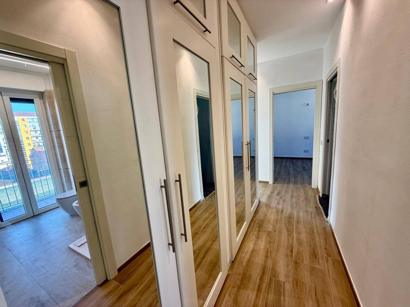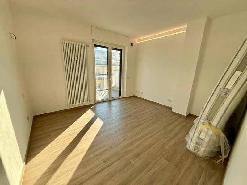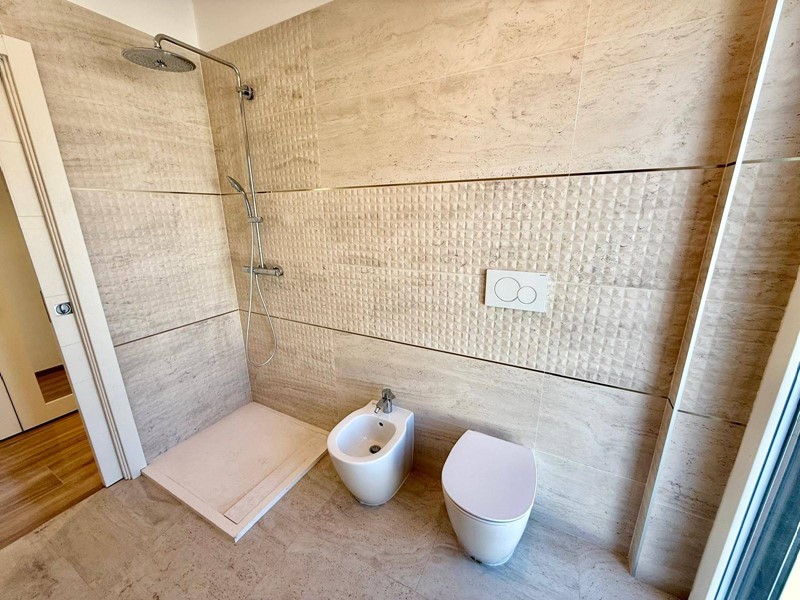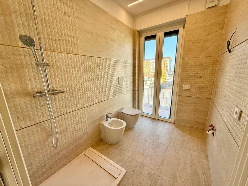 Lalloggio è stato completamente ricostruito allinterno dei muri perimetrali e mai abitato dopo la fine lavori. Le rifiniture e le dotazioni sono di alto livello. Abbiamo una porta blindata elettronica a combinazioni apribile con app dedicata con il cellulare, con chiavi e tessere programmabili. Pannello interno della porta blindata stesso disegno e colore delle porte interne. Lame di luce dimerabili incassate nei muri verticali delle camere da letto e nei soffitti della zona giorno, della cucina e dei bagni gestibili con interrutore o app dedicata. Termovalvole dei termosifoni domotiche Netamto comandabili da remoto tramite app con possibilità di regolare e tenere facilmente sotto controllo la temperatura e i consumi di ogni stanza . Infissi in PVC trasmittanza 1.1. Tapparelle elettriche gestibili sul posto singolarmente, dalla porta dingresso in modo centralizzato e da remoto con app dedicata. Zanzariere a carrarmato per portefinestre e avvolgibili per le finestre . Termosifoni termoarredi di alluminio Zehnder. Rubinetteria della Grohe con docce termostatiche (regolazione automatica della temperatura) . Sanitari ideal standard. Due condizionati Daikin con modulo wifi e predisposizione per altri due split. Vmc puntuale (ventilazione meccanica controllata ) in ogni camera ad eccezione dei due bagni dotati di estrattori automatici con sensore di umidità. Tutto lappartamento è stato cablato per la linea internet. Impianto elettrico della living now della Biticino. Tutta la domotica è gestibile da remoto in loco o tramite applicazione dedicata o in loco anche tramite comando vocale Alexa o google play. Terrazza e balcone sono stati completamente rifatti sia a livello di impermeabilizzazione, pavimentazione e facciata. Pavimentazione della zona giorno e notte in gress porcellanato con listellatura tipo legno color miele di due dimensioni. La stessa pavimentazione groffata antiscivolo per esterni è stata posata sul terrazzo per creare una continuità architettonica tra esterno e interno. Tutte le porte interne sono a scrigno in legno sbiancato con vetro per tutte le camere e cieche per i bagni.