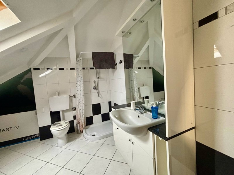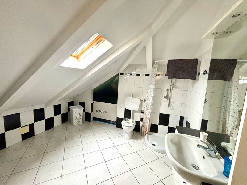 Presente soffitta alta con locale hobby/ camera da letto e bagno grande con box doccia.