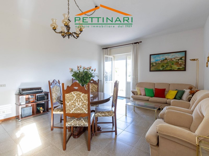 L'appartamento al piano secondo, luminoso, si compone di ampio soggiorno, cucina abitabile, 1 camera matrimoniale, 2 camere singole, 2 bagni con doccia e sottotetto in comune.