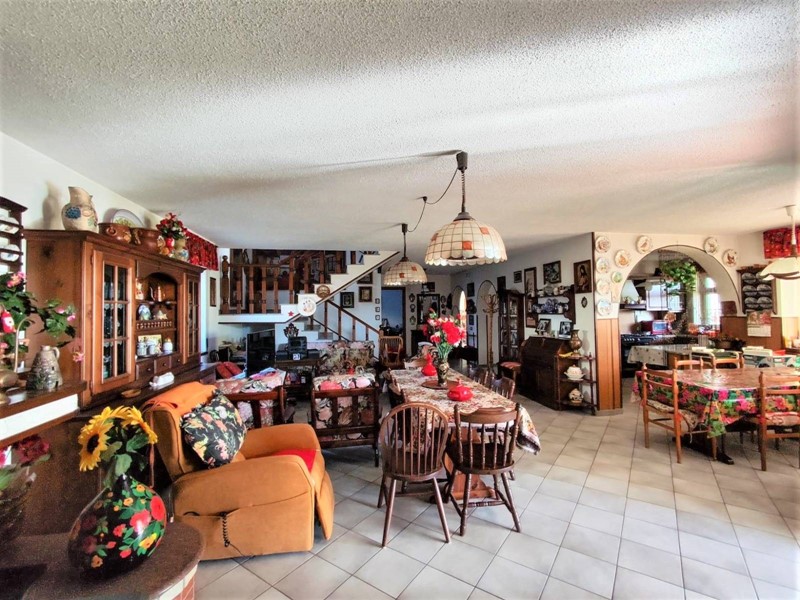 Si sviluppa su tre piani, per un totale di 260 metri quadrati, che includono ampi spazi interni ed esterni ideali per godere al massimo della vita all'aria aperta. Al piano seminterrato troviamo un luminoso e spazioso soggiorno arredato con gusto, che si apre su una veranda con vista sul giardino.