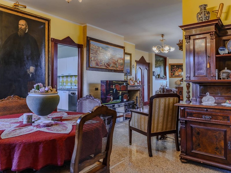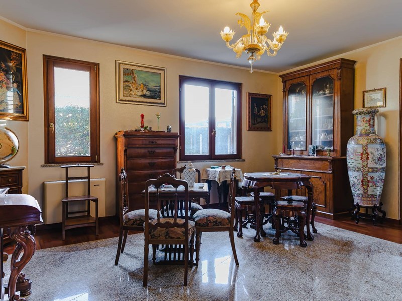 L'ingresso principale conduce a un ampio soggiorno di 80 mq con camino, reso luminoso da una grande porta finestra che dà accesso al giardino. La zona giorno è completata da una cucina abitabile, uno studio, una lavanderia e due bagni.