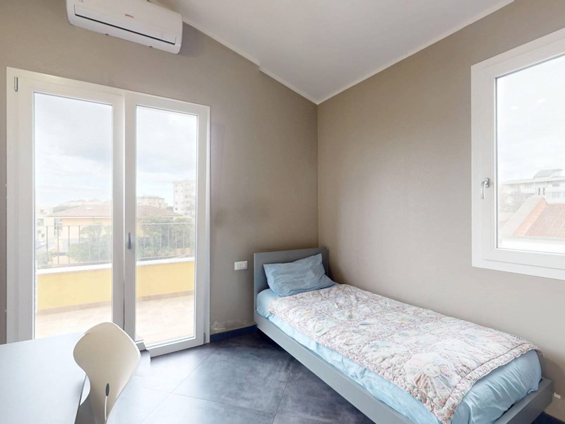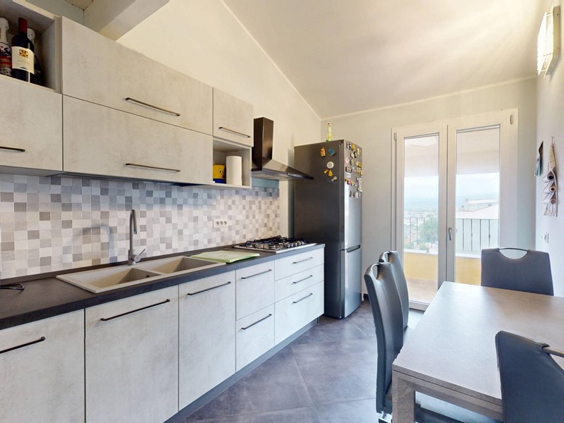 Spazioso soggiorno con balcone, cucina separata con accesso diretto alla terrazza panoramica, un bagno e una zona notte composta da tre camere da letto, bagno, seconda terrazza e balcone, più soppalco di 30mq.