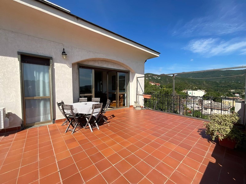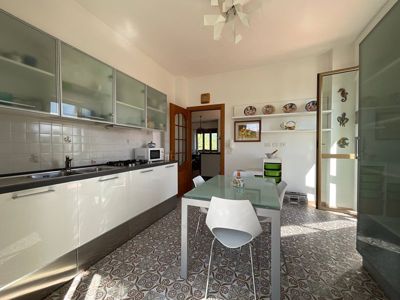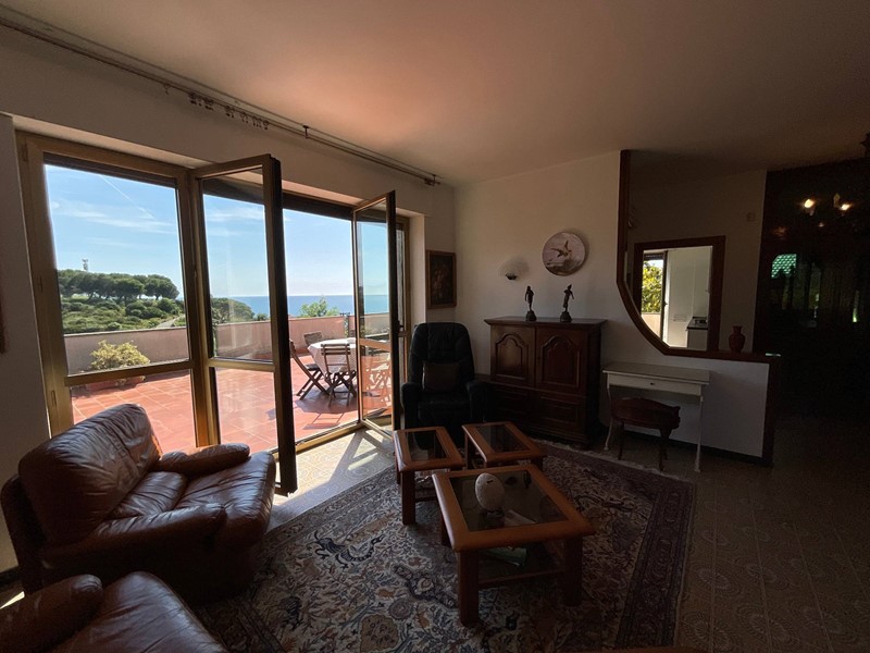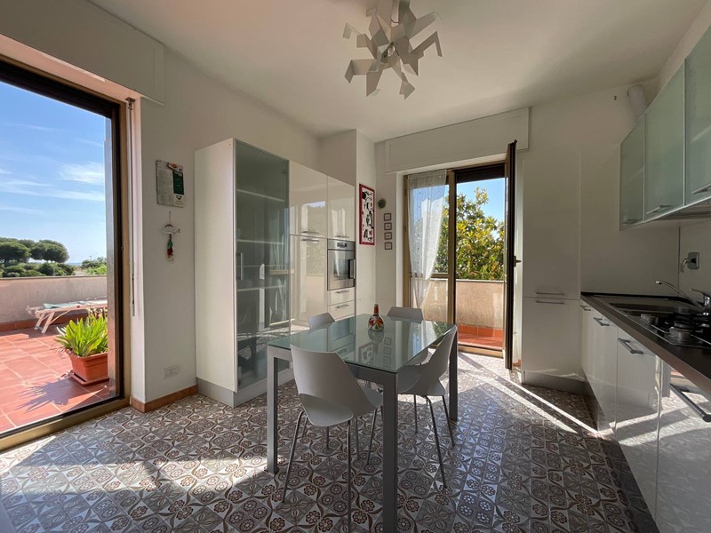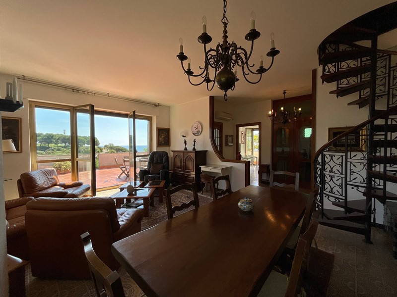 E' costituita da ingresso su ampio salone che insieme alla cucina abitabile hanno accesso diretto alla grande terrazza panoramica sul mare e sulle colline circostanti.
