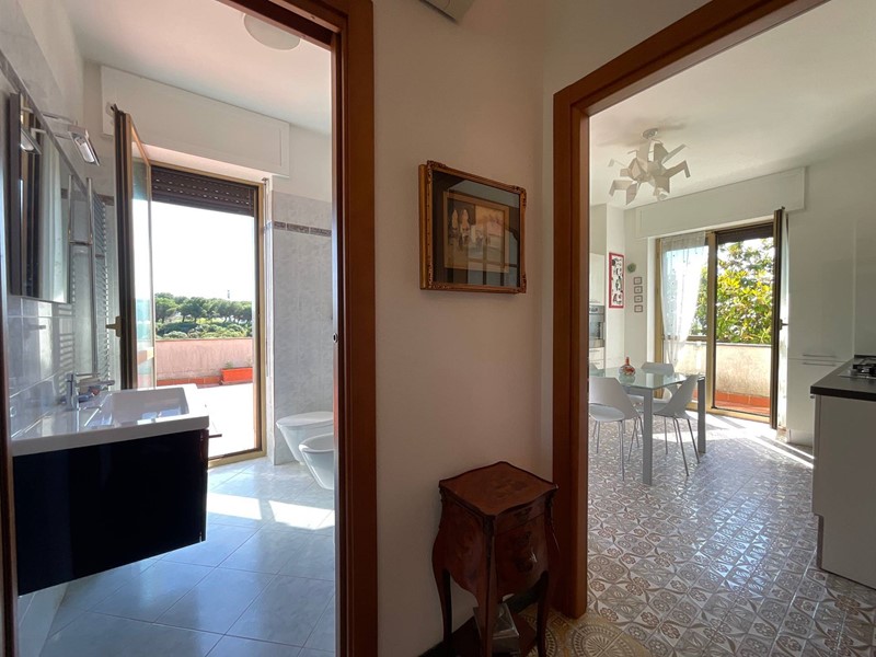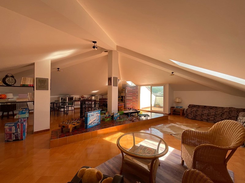Dal salone accediamo alla grande mansarda abitabile di oltre 90 mq. con terrazzino a tasca privato con vista mare.