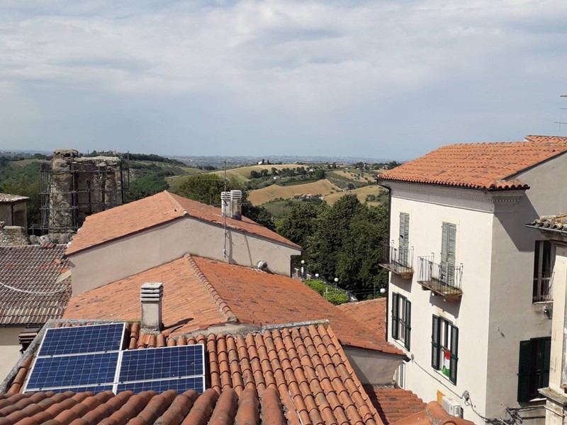 Nel centro storico di Manoppello, PORZIONE DI FABBRICATO avente un doppio ingresso, ottimo per due famiglie. Al piano primo, ampio salone, doppia cucina, di cui una con camino, 2 camere matrimoniali, bagno e balcone su Corso Santarelli; al piano secondo, ampio locale pluriuso, un vano con camino e due vani ad uso ripostiglio; al piano terzo, vano luminosissimo e panoramico, con ampie vetrate sui quattro lati. Il tutto completo di cantina nel seminterrato. Pronta consegna. Per info 3485257833