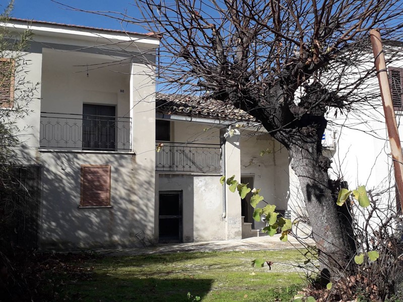 Alle porte del centro storico del paese e a soli 20 minuti dal mare, PORZIONE DI CASA SINGOLA avente un doppio ingresso, composto da una cucina con camino, soggiorno, 3 camere, 2 bagni, oltre ad annesse cantine ed un ampio giardino esclusivo. Ottimo come struttura ricettiva, tipo B & B.