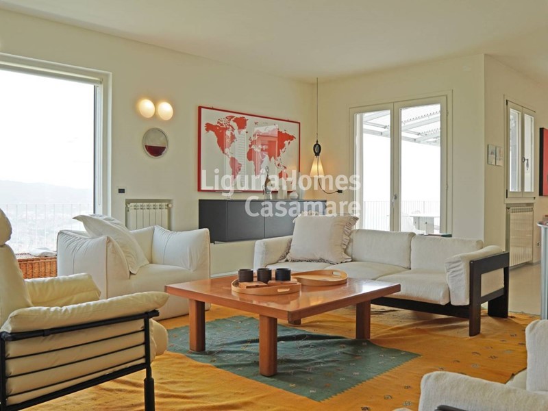 Sulla primissima collina che domina il promontorio di Capo Berta da un lato e Diano Marina con il suo affascinante golfo dall'altro, questa villa moderna con piscina in vendita si trova in una posizione estremamente panoramica e dominante.