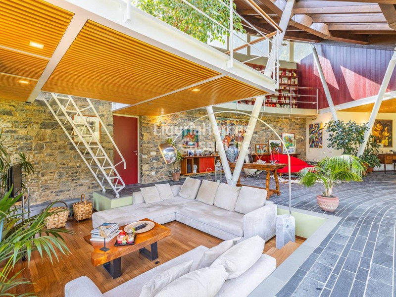 A livello del giardino, un ampio portico, fruibile da entrambe le unità, offre l'angolo ideale per il relax all'aperto e per ammirare panorami mozzafiato, sottolineando la posizione privilegiata di questa residenza nel cuore più autentico di una Liguria viva.