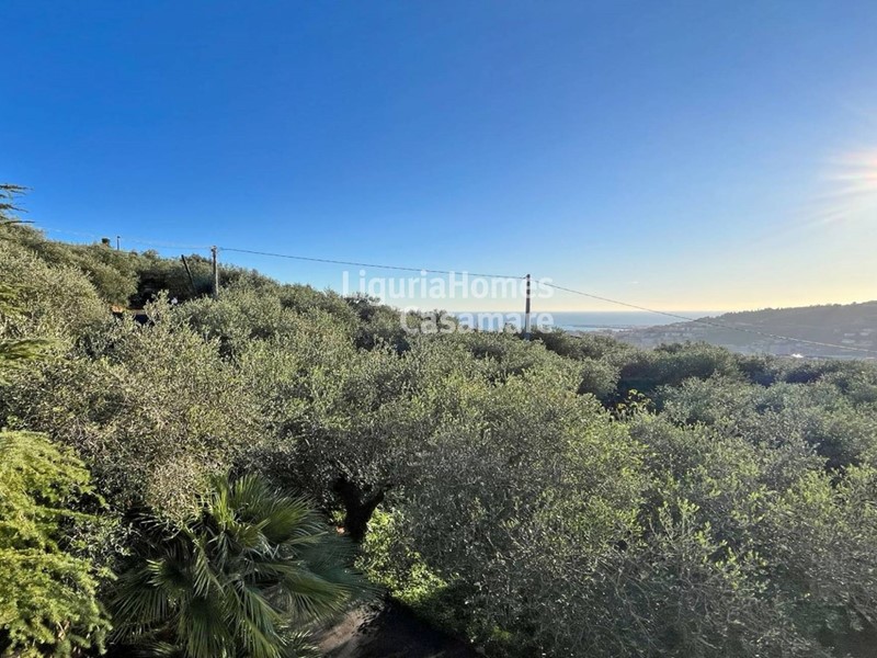 Alle spalle di Imperia, nella primissima collina, a pochi minuti dal centro città, dal mare ed immersa nella campagna e negli uliveti tipici della zona, vendita di grande villa con giardino privato e numerose piante di ulivo.
