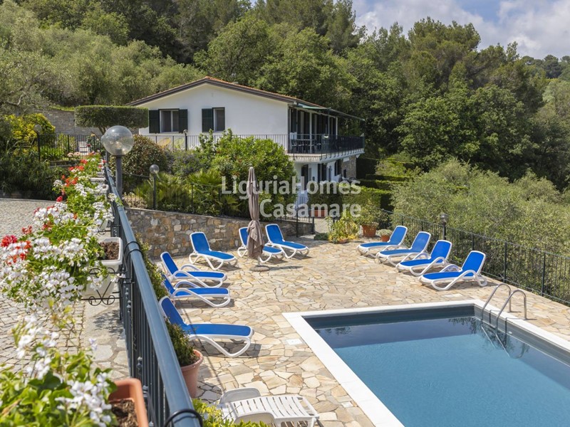 Villa con grande piscina e vista mare in vendita sulla prima collina di Imperia.
