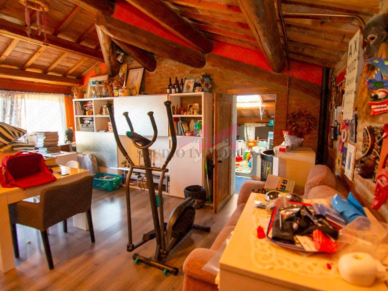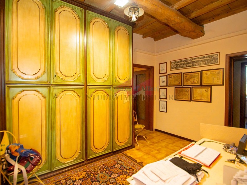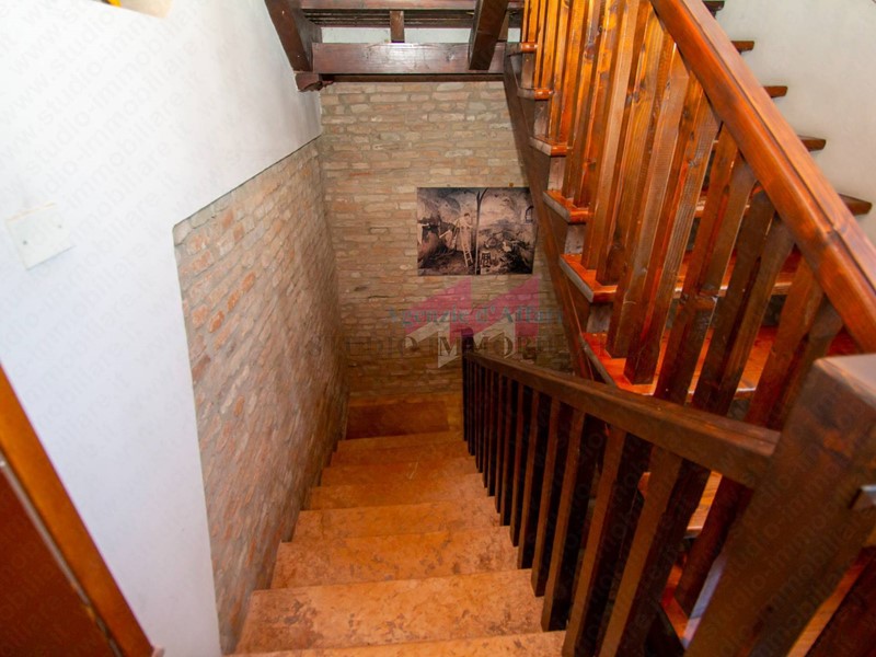 In pieno centro a Melara, adiacente alla piazza principale, si vende porzione di fabbricato a schiera sviluppato su tre livelli. L'immobile è composto al piano terra da ingresso e ripostiglio, proseguendo per il vano scala, al primo piano troviamo un ampia entrata/disimpegno, zona giorno con caminetto a legna, cucinotto, una stanza da letto matrimoniale con armadio a muro ed un'ulteriore stanza da letto di ampia metratura, bagno con doccia. Al secondo piano, soffitta praticabile di 5 vani con travi in legno e pareti in pietra a vista, ed una terrazza.