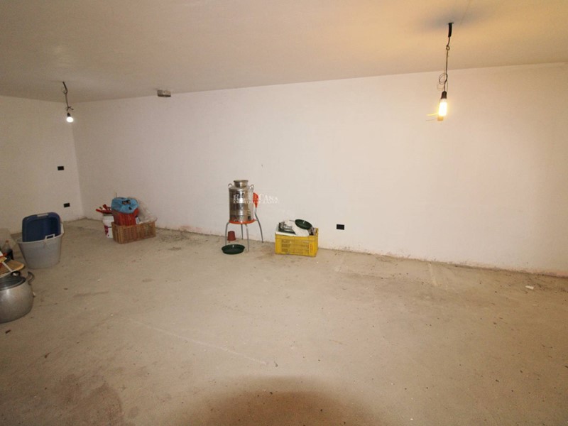 Composto da un piano seminterrato con ampio garage per diverse auto, un rustico già predisposto per un caminetto e un bagno, in tutto il piano manca la pavimentazione.