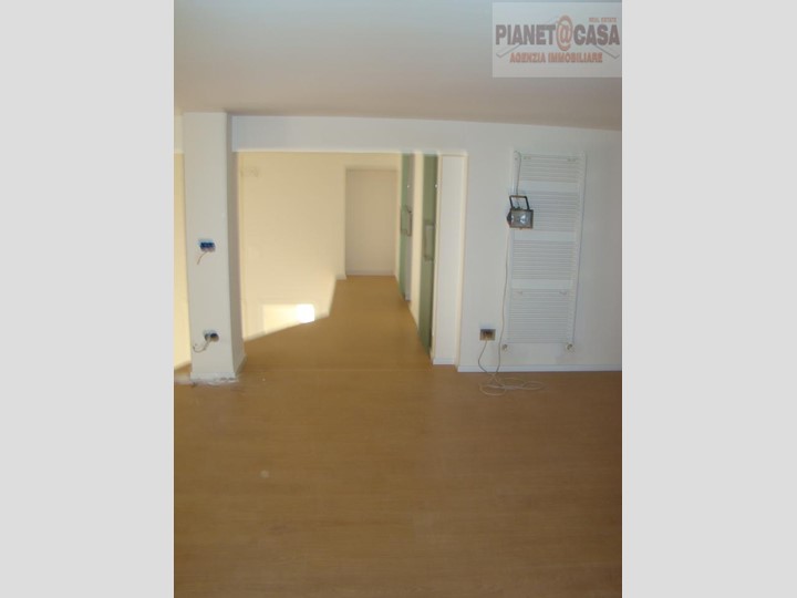 L'appartamento, di circa mq 150, è composto da: ingresso su grande soggiorno-pranzo open space, cucinotto separato, tre camere da letto e due bagni; dal soggiorno si accede ad un soppalco a vista di circa mq 40 suddiviso in zona soggiorno, studio ed un bagno.