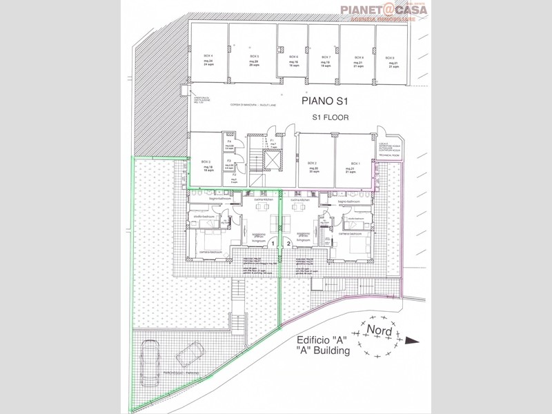 L'appartamento di mq 61 è composto da: ingresso su soggiorno con cucina a vista, disimpegno, bagno finestrato con doccia, camera matrimoniale e studio/cameretta.