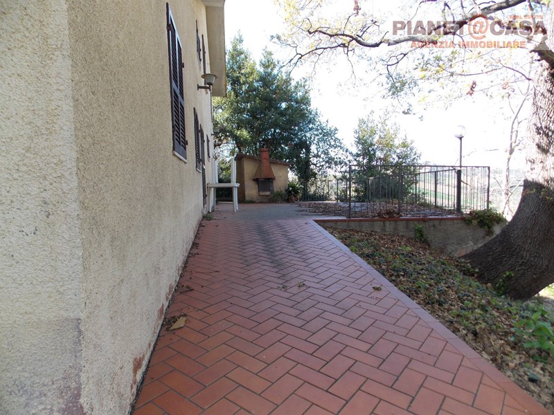 - Piano Terra composto da ingresso su ampio Soggiorno con camino, Corridoio, Cucina abitabile con altro camino, Cantina/Fondaco, Ripostiglio, una Camera ed un antibagno e Bagno, oltre a Lastrico esterno panoramico che affaccia sulla Corte/Giardino e su un Terreno Agricolo privato di circa 7.000 mq. con uliveto e quercia secolare.