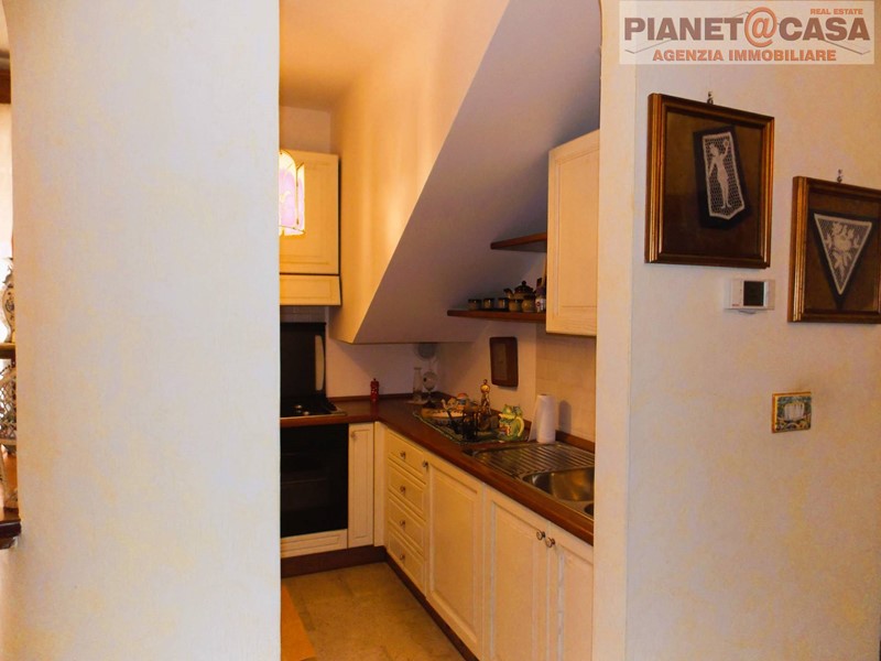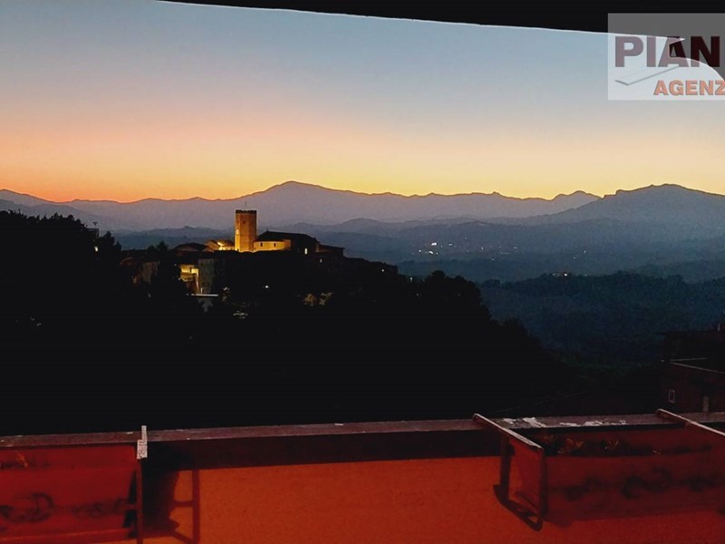 Con Scala interna si accede al piano superiore dove troviamo altri due ampi locali uno adibito a soggiorno con camino ed angolo cottura, l' altro adibito a camera da letto / studio, un disimpegno, un ripostiglio ed un bagno con vasca, oltre ad una Terrazza Panoramica di circa 40 mq. con vista sul Borgo e sulla catena montuosa degli Appennini.