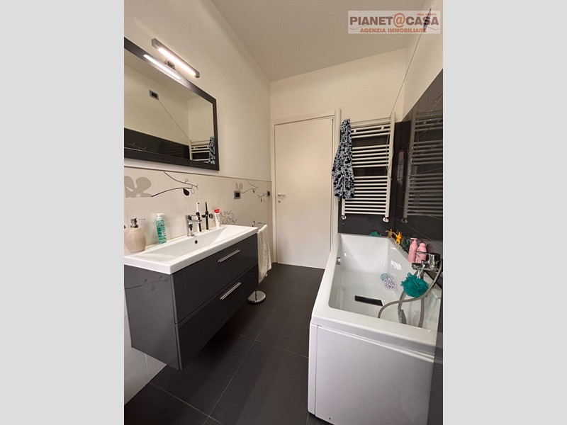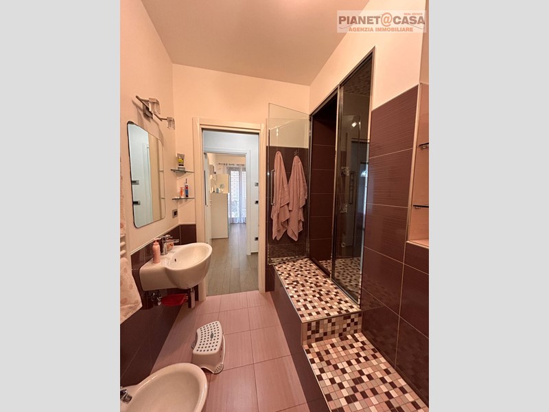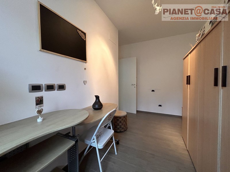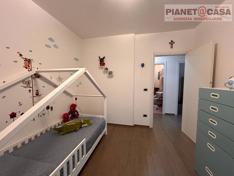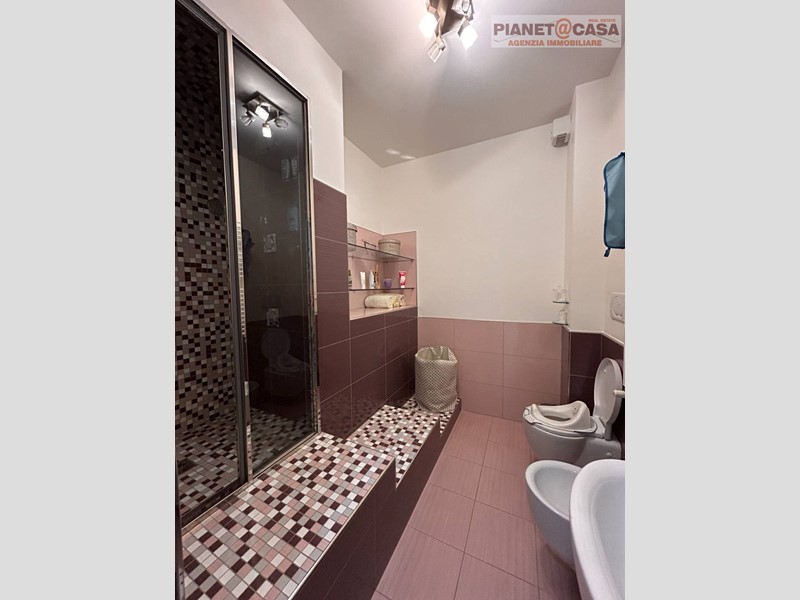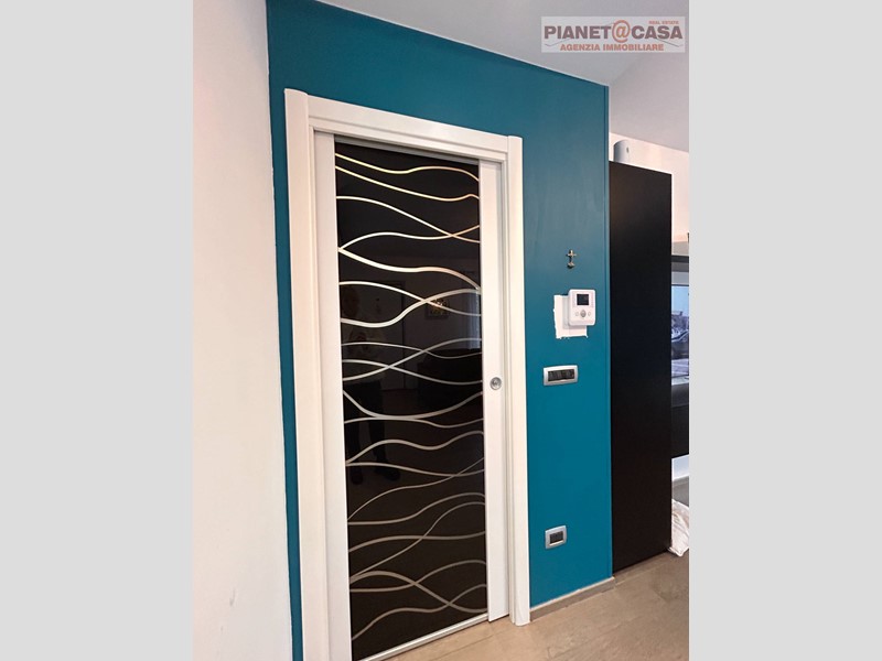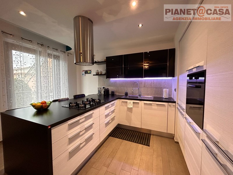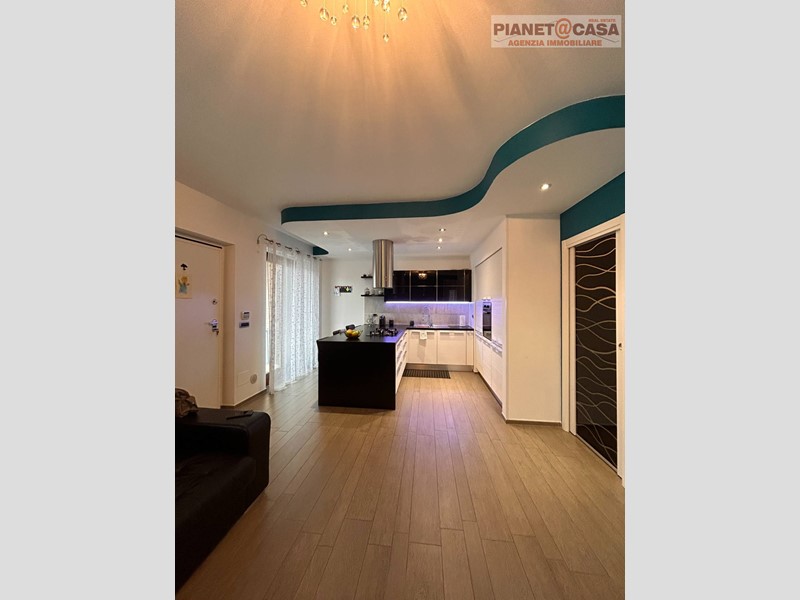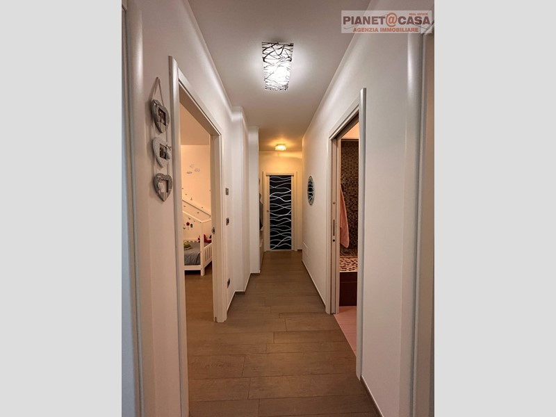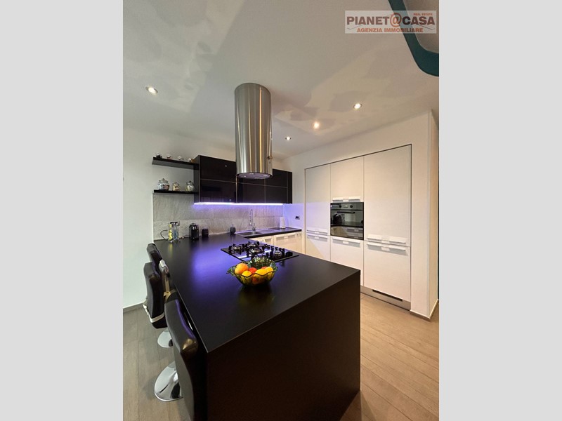L'immobile si sviluppa su due livelli ed è composto da ingresso su zona giorno open space con soggiorno e splendida cucina con penisola, disimpegno, una camera da letto matrimoniale, una doppia e una cameretta, due bagni di cui uno finestrato con vasca ed uno con aerazione forzata con doccia dotata di sauna e idromassaggio.