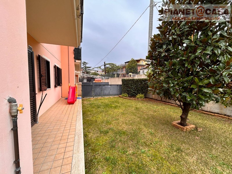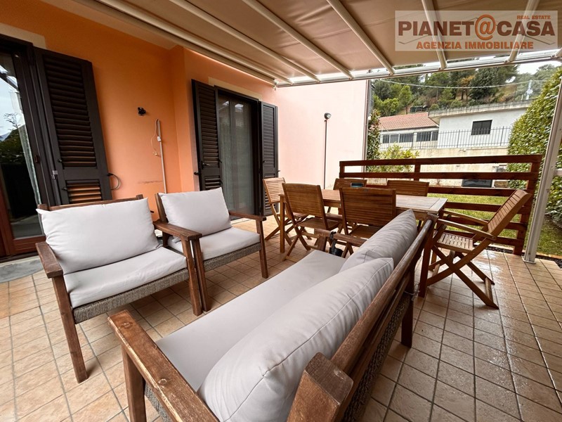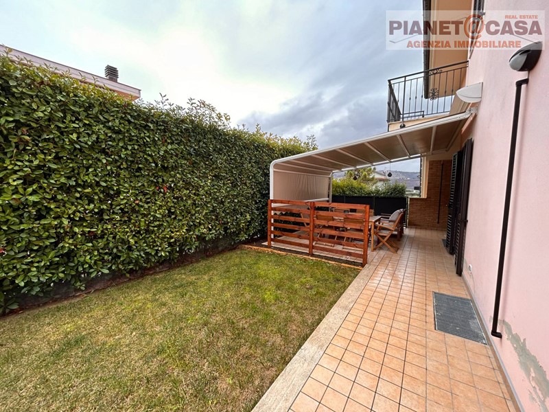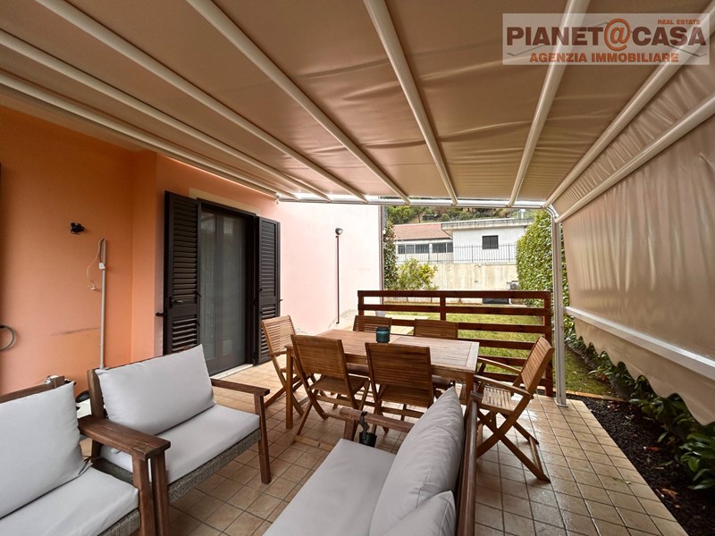 Tutte le stanze dell'appartamento affacciano su un grande giardino in parte pavimentato di circa 200 mq e dotato anche di una zona pranzo esterna coperta adiacente alla zona giorno.