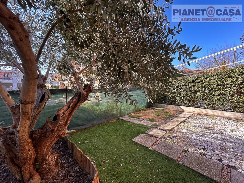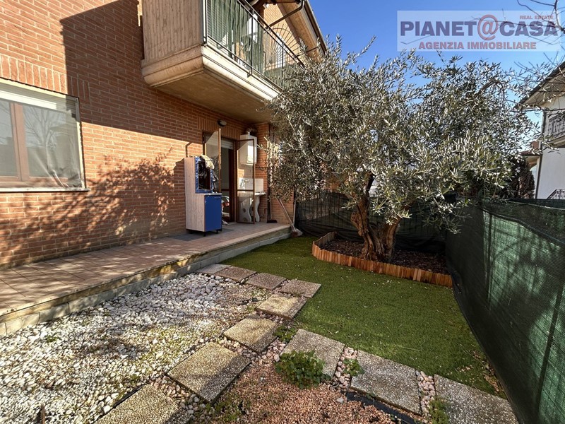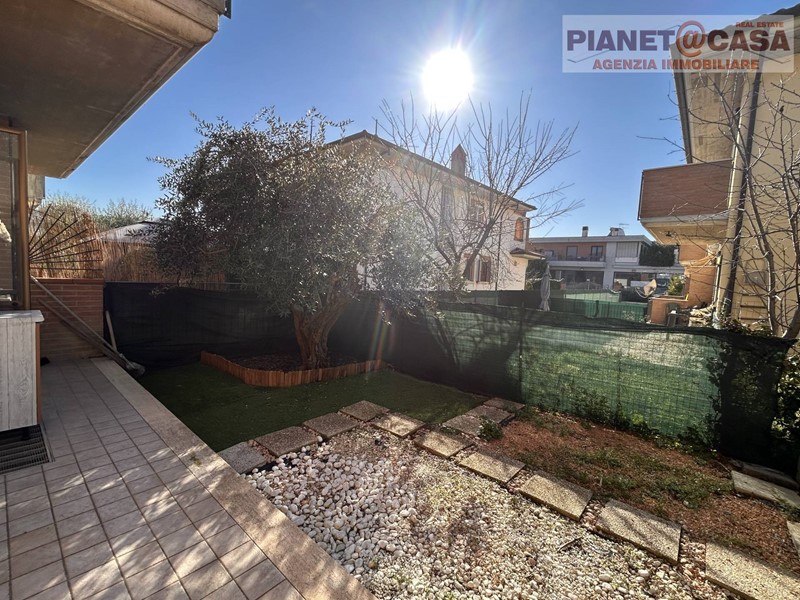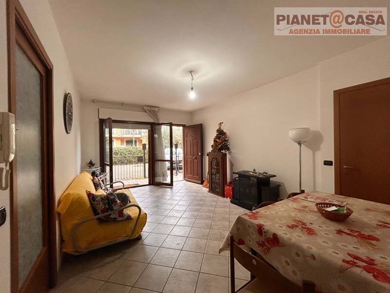 L' immobile, sito in palazzina di recente costruzione in ottimo stato di manutenzione, è composto al piano principale da ingresso su ampio soggiorno, cucina, disimpegno, una camera matrimoniale, una cameretta doppia, un ampio bagno con vasca, un locale ripostiglio con predisposizione per la realizzazione di un secondo bagno ed una corte esterna in parte pavimentata ed in parte adibita a giardino.