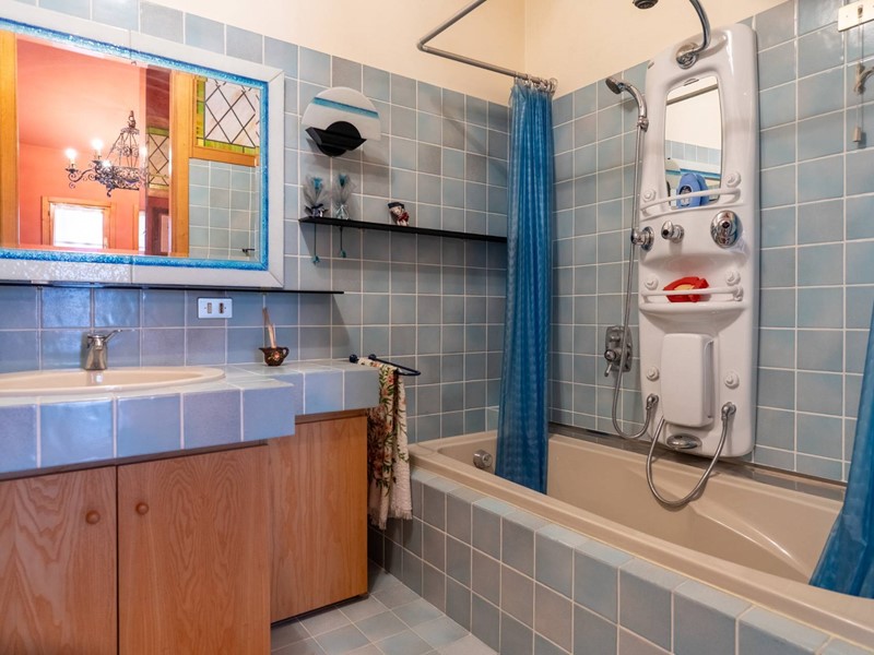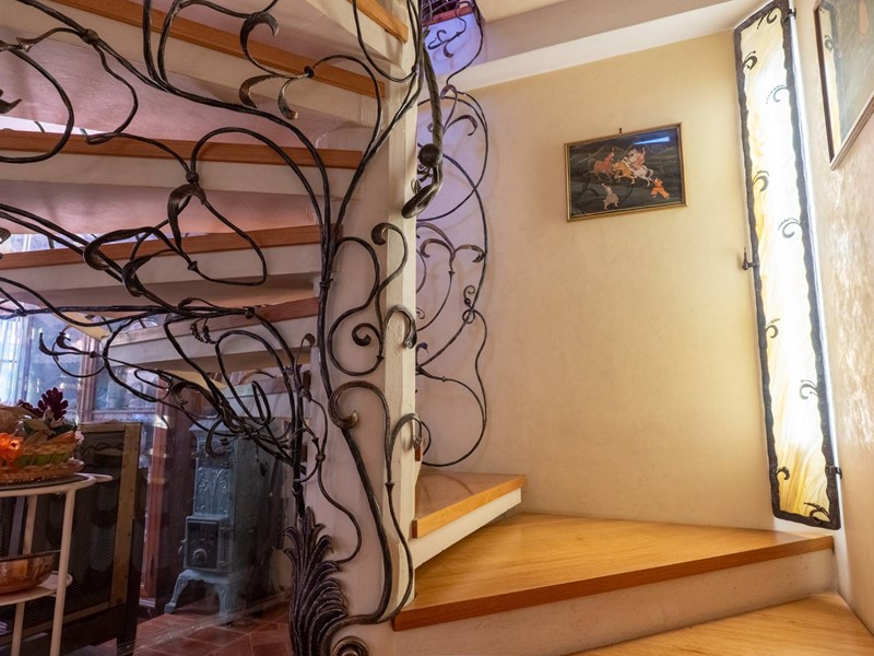 La scala, a vista sulla zona giorno, davvero stupenda, con ringhiera in ferro lavorato, conduce alla zona notte, composta da tre camere da letto, che possono facilmente diventare quattro, e a un ulteriore bagno con vasca, perfetto per tutta la famiglia.