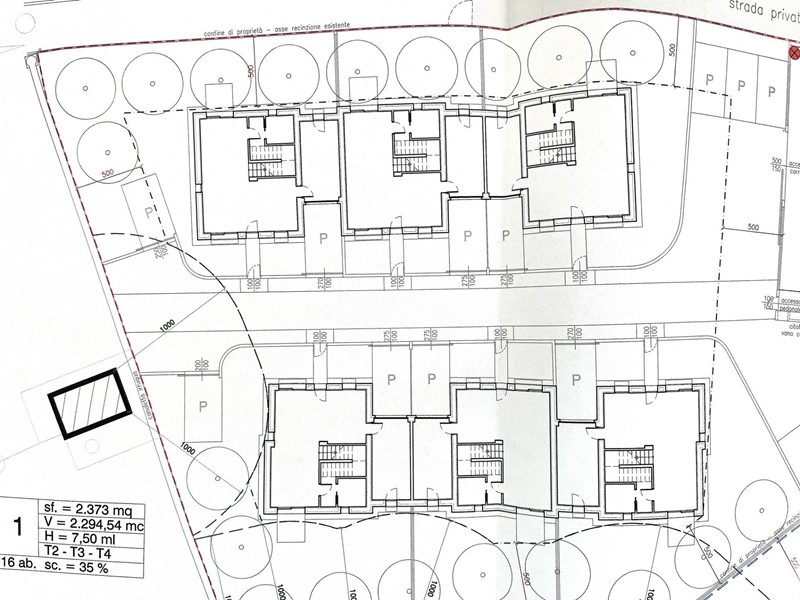 È stata fatta una bozza di progetto per la realizzazione di due trifamiliari o altrimenti si possono eseguire due palazzine di 5/6 appartamenti ciascuna. Per entrambe, è presente la bozza di progetto.