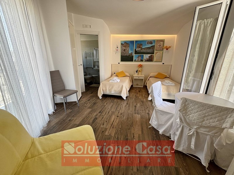 L'immobile è autonomo e indipendente su 2 livelli composto al primo piano dalla reception, 4 camere tutte con bagno privato, mini cucina e balcone e zona solarium e al secondo piano da altre 2 camere, 2 ampie terrazze/solarium arredate, zona lavanderia con lavatrici, asciugatrici e zona stiro.