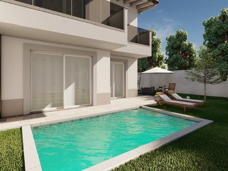 Il giardino di circa 250 mq circonda la Villa sui tre lati liberi e su richiesta si avrà la possibilità di realizzare la piscina dove potersi rilassare e godere del silenzio e del verde del vicino parco.