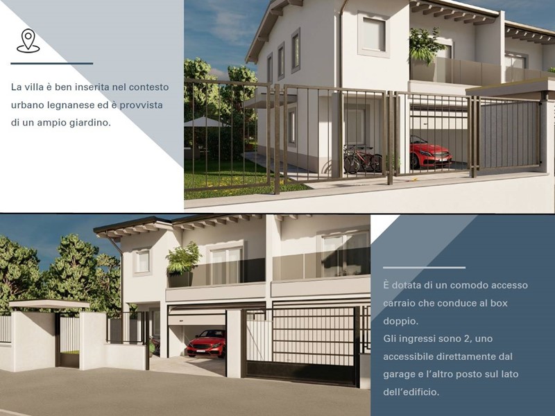 La porzione di Villa Bifamiliare in Vendita a Legnano, è situata a pochi km dal centro e poche centinaia di metri dai servizi principali, dai centri commerciali e dal Parco Castello.