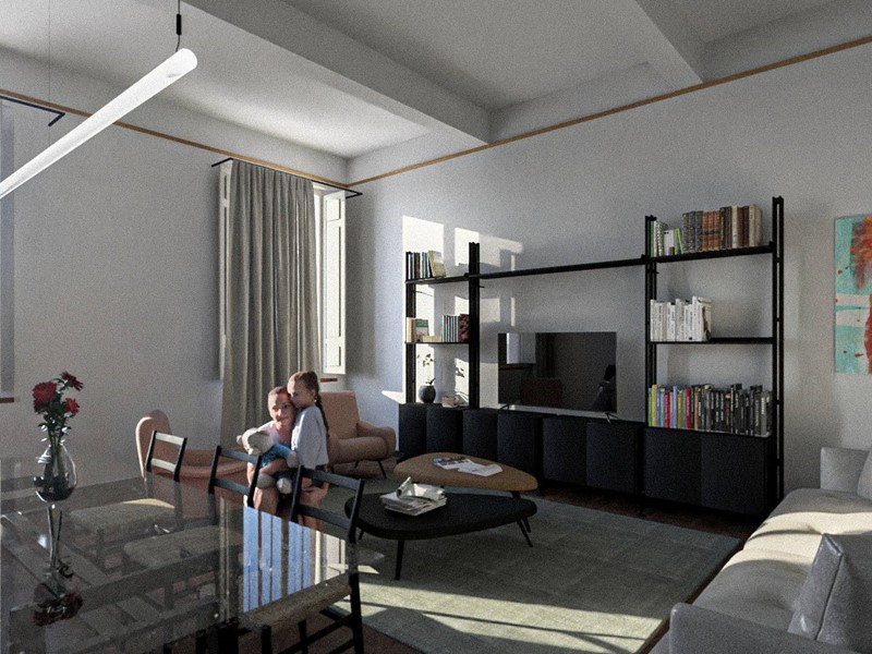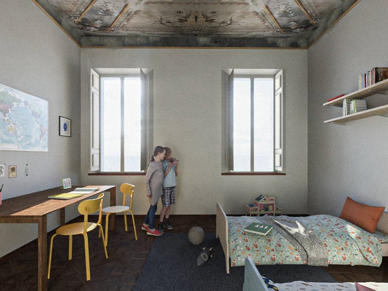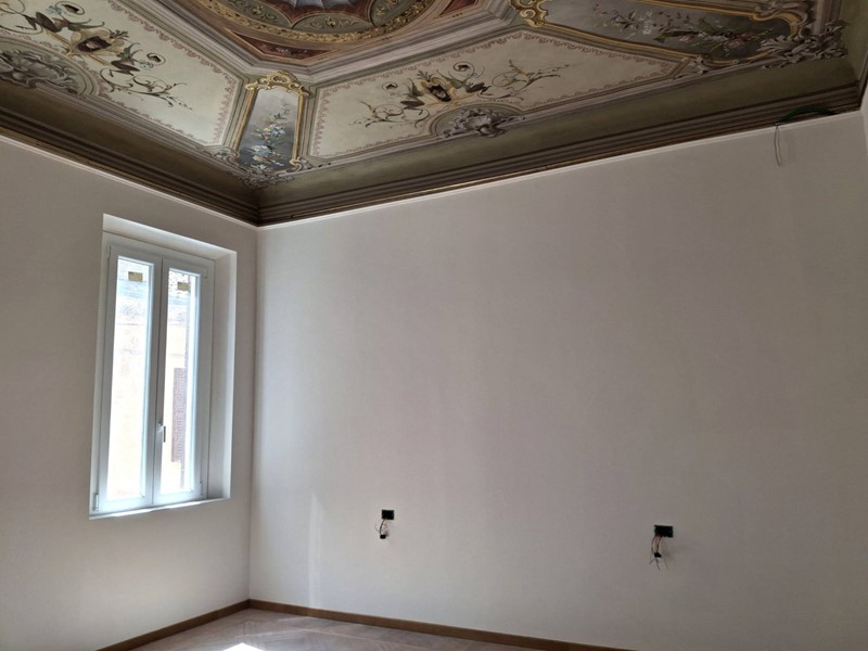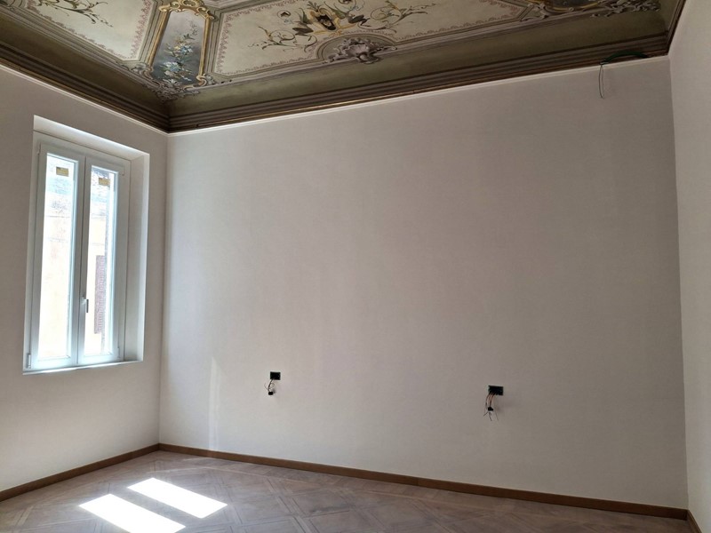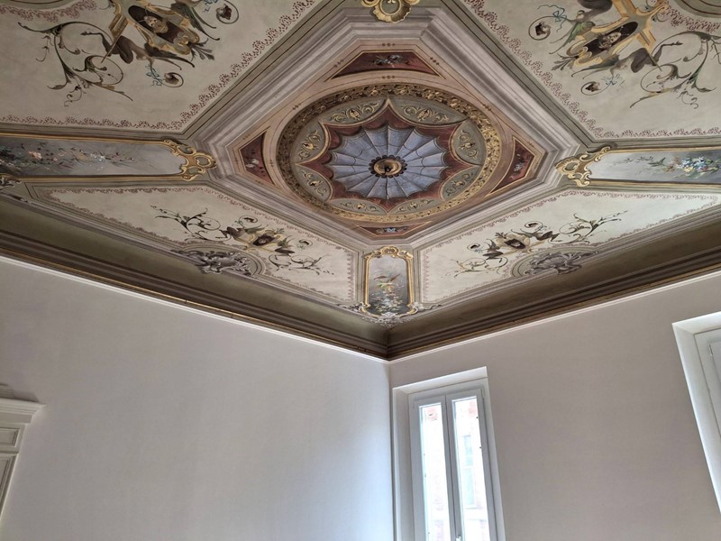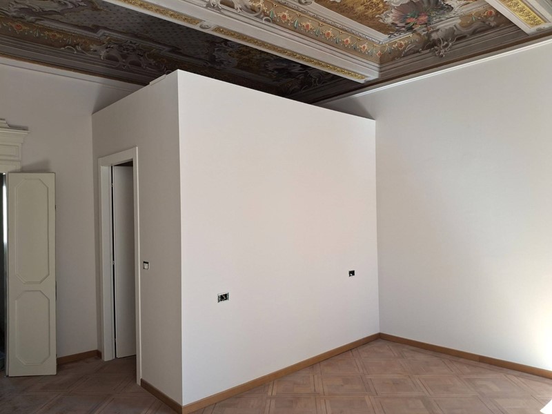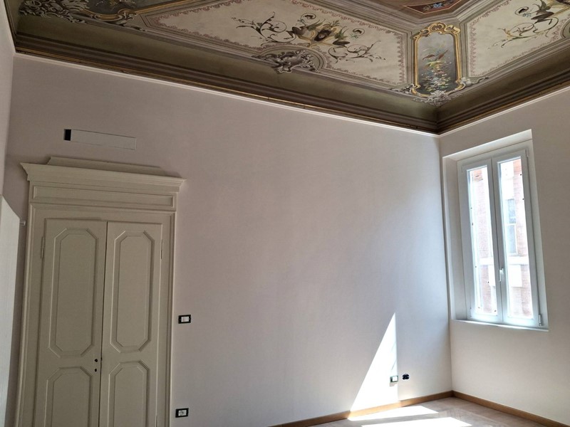 AC306 - FERRARA (VIA FRANCESCO DEL COSSA) - Appartamento "A" - Splendido appartamento impreziosito dai bellissimi soffitti affrescati, inserito in palazzina di sole 4 unità abitative (tetto nuovo), posto al primo piano con ascensore e senza barriere architettoniche, così composto: ingresso, ampio soggiorno/salotto (mq.29), 2 grandi camere da letto matrimoniali di cui una con cabina armadio, 2 bagni. Completano la proprietà un esclusivo garage e un piccolo vano ad uso cantina. Particolarmente curate sono le rifiniture con il restauro degli antichi parquet e delle antiche porte in legno massello; i nuovi serramenti interni sono in PVC bianco con vetrocamera di ultima generazione; l'impianto di riscaldamento autonomo dotato di caldaia a condensazione di ultima generazione completo di boiler di accumulo; l'impianto elettrico è completato dall' impianto fotovoltaico con potenza 6 Kw. Classe energetica in fase di certificazione. Euro 522.000