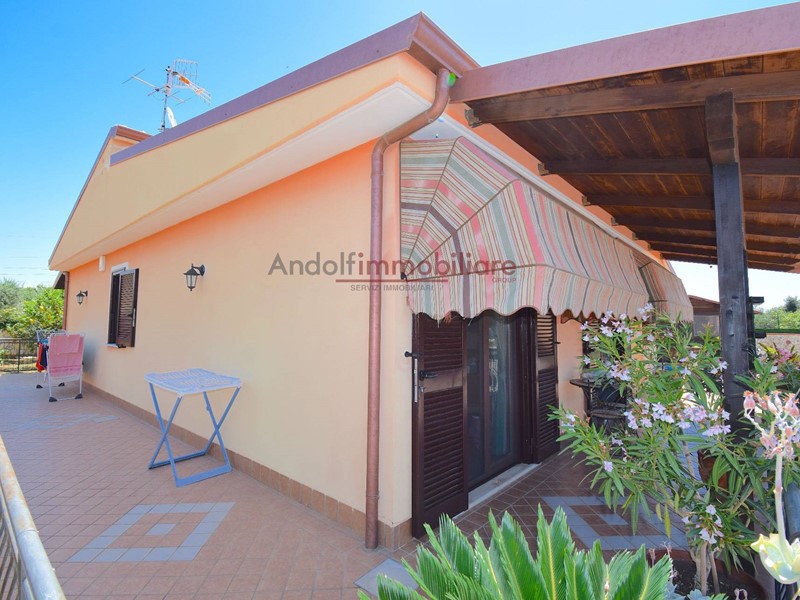 Gaeta. A 5 minuti dal centro cittadino, l'Agenzia Andolfimmobiliare propone in vendita, villetta unifamiliare di 90mq interni costruita nel 2011, realizzata su un lotto di circa 700mq, recitato e servito da cancello automatico. L'immobile si sviluppa su un unico livello ed è composta da zona giorno con angolo cottura e ripostiglio, disimpegno, 2 camere da letto, bagno patronale con finestra e doccia e bagno di servizio. Sulla corte esterna, in parte pavimentata e in parte a giardino, è presente una casetta un gazebo in legno per godersi il pranzo o la cena d'estate, una casetta di legno per gli attrezzi di 16mq, varie piante da frutto, un pozzo e una tettoia per il ricovero diverse auto. Inoltre è dotata di riscaldamento autonomo, aria condizionata, portone blindato, infissi vetro camera effetto legno, video citofono, zanzariere, persiane blindate, allarme, autoclave, tende da sole esterne e tanto altro...Ottime condizioni generali, ideale per chi ama la tranquillità ed ampi spazi.