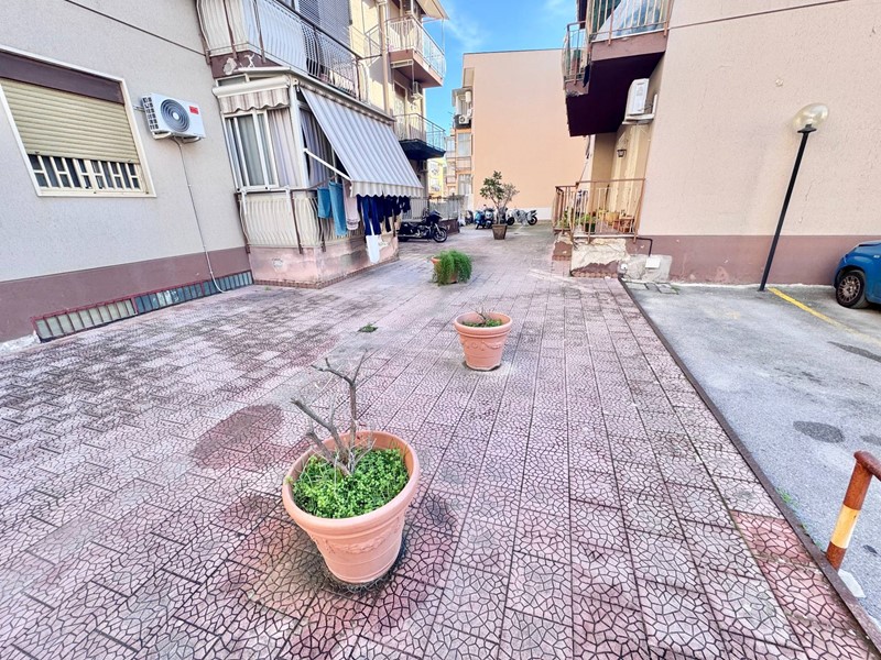In Via Cruillas, nei pressi della Chiesa, disponiamo di un appartamento di 3 vani locato in residence di circa 100 mq con terrazzo posto al piano rilazato, cosi composto: ingresso, salone doppio dove si può ricavare un'altra camera, cucina abitabile con annesso terrazzo, cantinola e piccolo giardino con cancello pedonale, camera matrimoniale, wc con vasca, corridoio ed armadio a muro. L'appartamento si presenta in buono stato con pavimentazione in ceramica, infissi in alluminio anodizzato, impianto elettrico a norma, idrico in rame. L'appartamento dispone di condizionamento autonomo, posto auto e moto all'interno dell'area condominiale che dispone di 2 accessi. E' possibile visionare l'apprtamento previo appuntamento telefonico presso la nostra agenzia.