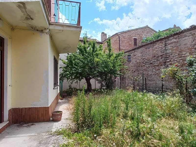 Appartamento sito al piano terra di una bifamiliare sita nel centro storico di Santa Vittoria in Matenano, con annessa corte pertinenziale esclusiva e locale magazzino frontistante. La soluzione abitativa è stata oggetto di completo restauro, impianti, rivestimenti, bagni, porte ed infissi nuovi. Abitativo di ottantotto metri quadrati con ingresso, sala da pranzo con tinello, bagno finestrato, due camere matrimoniali di cui una con bagno ad aspirazione forzata in camera. Corte antistante all'ingresso di pertinenza per un totale di circa 135 mq. Sulla corte sussiste un diritto di passaggio del primo piano. Locale caldaia al piano S1 di circa 9 mq, legnaia magazzino su edificio di fronte all'abitazione di circa 51 mq.