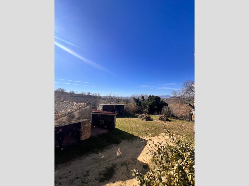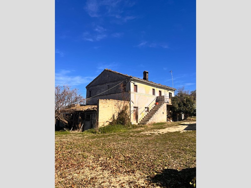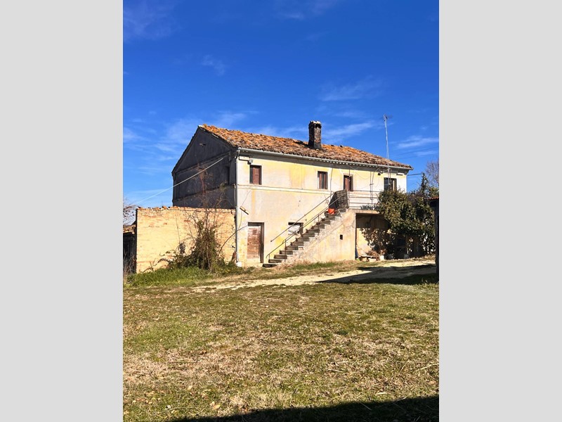 La casa in classico stile marchigiano presenta la tipica scala esterna di accesso alla parte abitativa del primo piano composto da quattro vani per un totale di 90 mq, mentre al piano terra troviamo le vecchie stalle, magazzino e legnaia per un totale di 173 mq.
