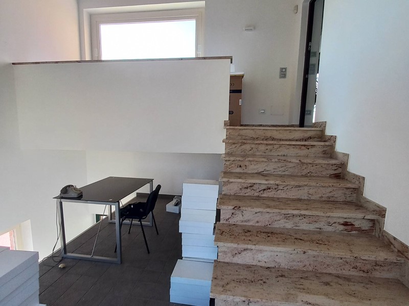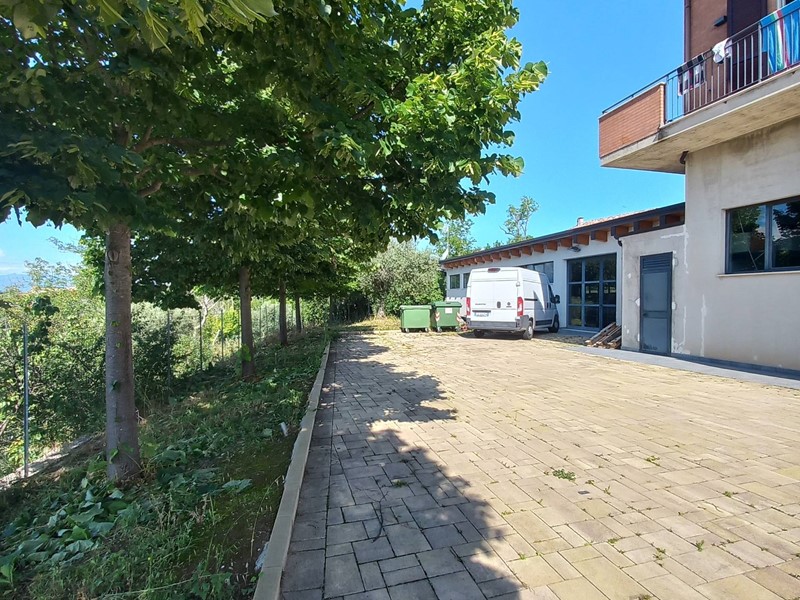 La proprietà è stata realizzata di recente ed è pronta ad essere vissuta ed utilizzata fin da subito, presenta ottimi rifiniture sia nella parte abitativa sia nella parte del deposito e laboratorio. Gli spazi sono così divisi: corte di 715 mq recintati, piano terra composto da deposito/laboratorio di 330 mq più 20 mq di ufficio e ripostiglio, questo piano è dotato di tre comodi ingressi consentendo il facile passaggio tra i vari ambienti di lavoro, la struttura è nuova e dotata di ogni confort per la sicurezza e l'efficienza, gli ambianti che sono luminosi, confortevoli ed a norma secondo i vigenti obblighi di legge. Sempre al piano terra troviamo il quarto ingresso autonomo per la prestigiosa abitazione sita al piano primo e secondo, essa è composta da luminosa scala di accesso, ingresso su soggiorno cucina costituito da un unico grande ambiente dotato di ampie finestre che si aprono sul suggestivo panorama, l'appartamento si sviluppa tutto su di un piano per un totale di 166 mq, più 46 di balconi, la zona notte è composta da una camera padronale con il suo bagno privato e cabina armadio, seconda camera, bagno, il tutto realizzato con rifiniture di pregio ha un' impronta moderna e molto elegante, particolare attenzione è stata data alla funzionalità dello stesso, una raffinata scala aperta ci conduce dalla zona giorno al secondo piano mansardato, dove troviamo un unico grande ambiente di 140 mq più balcone panoramico, l'ambiente è stato pavimentato ed ultimato con impianti e predisposizione ai servizi, spazio che può essere utilizzato a secondo delle proprie esigenze.