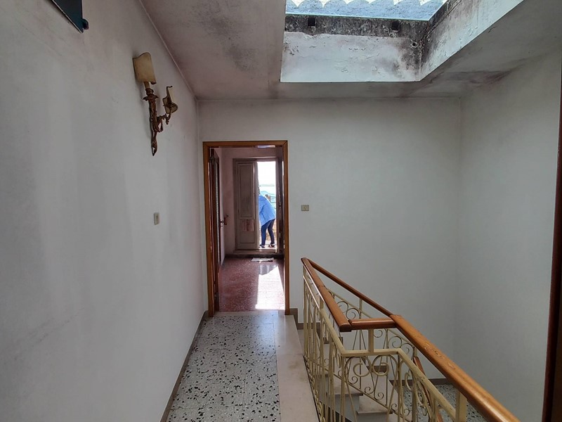 La casa articolata su 4 livelli per un totale di 170 mq si presenta abitabile da subito se pur possibile fare opere di amodernamento, tipo: rinnovare i bagni e migliorare l'isolamento del lucernario del quarto piano che da luce a tutto il vano scala. L'abitazione ha al piano terra un ingresso su locale commerciale, ex negozio di parrucchieria, un locale uso magazzino ed una bellissima grotta interamente in pietra e mattoni, ideale come cantina. Al primo piano troviamo un soggiorno con camino ed una cucina anch'essa con camino. Al terzo piano una camera da letto con i due bangi. Al quarto piano le altre due camere da letto, più un balcone panoramico con vasca per il bucato. La casa è posta lungo il corso principale adiacente ad attività commerciali e ricreative, ha una luminosa, ampia e comoda scala di comunicazione tra i vari piani ed infissi in buono stato. Completa la proprietà un appezzamento di terreno agricolo sito appena fuori le mura del paese di complessivi 3.650 mq.