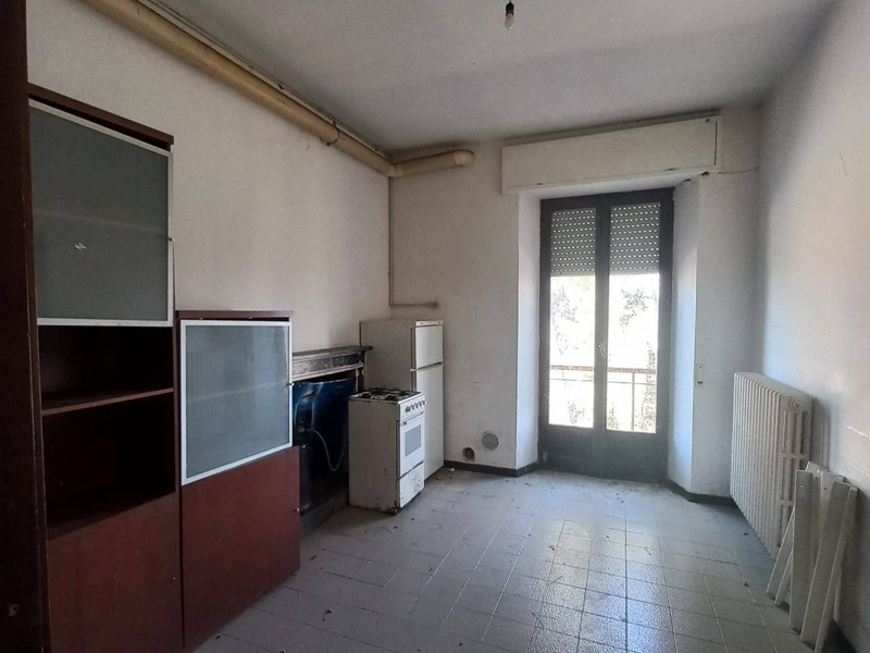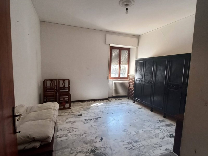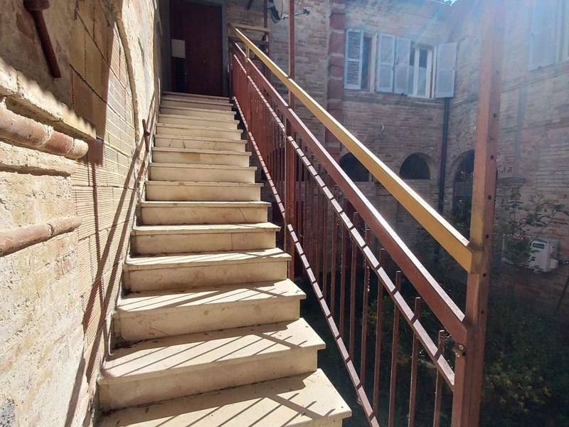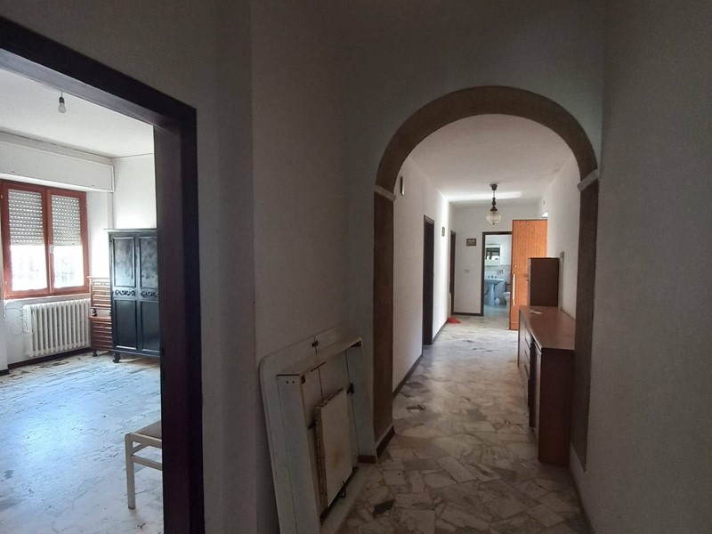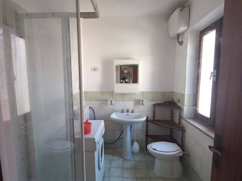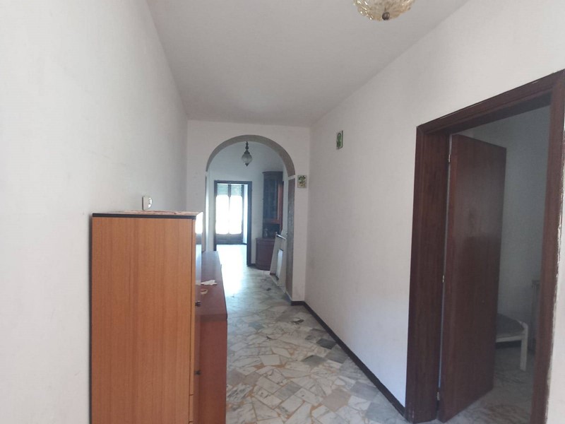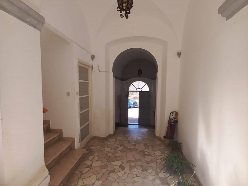 L'appartamento è sito al primo piano di un edificio realizzato in aderenza alla Chiesa principale ed ospitava un ex convento risalente al 1677. La soluzione in oggetto ha un ingresso al piano terra molto bello, in condivisione con le altre proprietà dello stabile ed un piccolo cortile interno sempre da condividere come spazio comune. Dal cortile, tramite una scala aperta, accedo alla porta dell'appartamento. L'unità abitativa è composta da un corridoio di distribuzione su cui affacciano tutti i locali ed è composto da una cucina con dietro cucina ed un piccolo balcone, una sala, tre camere da letto matrimoniali ed un bagno. L'immobile necessita di essere ristrutturato in riferimento agli impianti, bagno ed infissi, una porzione del tetto è da rivedere. Completa la proprietà una cantina di 10 mq al piano S1.